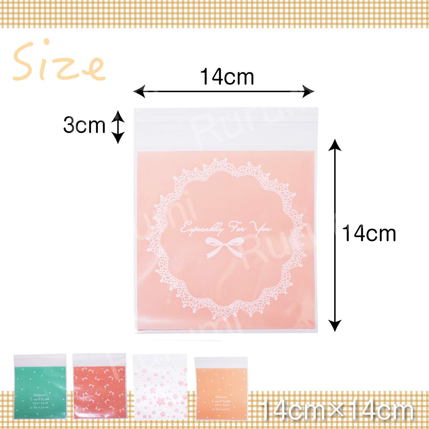 Rurumi 14cm×14cm ミニ プリント OPP袋 セット ラッピング袋 包装 テープ付 ビニール袋 (50枚セット)