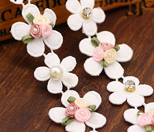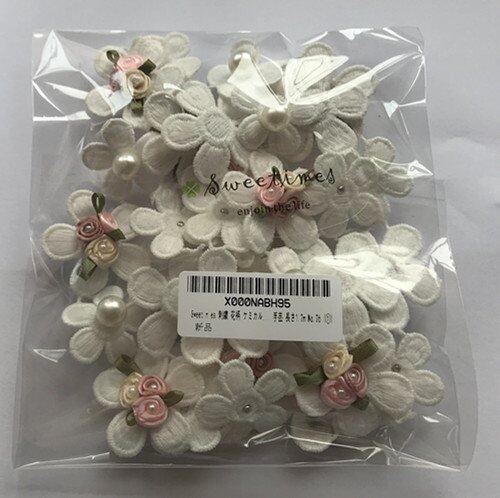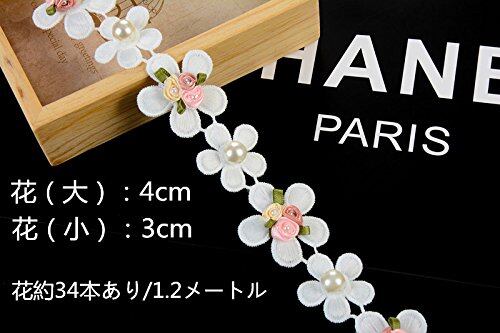 Sweetimes 刺繍 花柄 ケミカルレース モチーフ パール付き DIY 手芸 長さ1.2m No.26 (①)