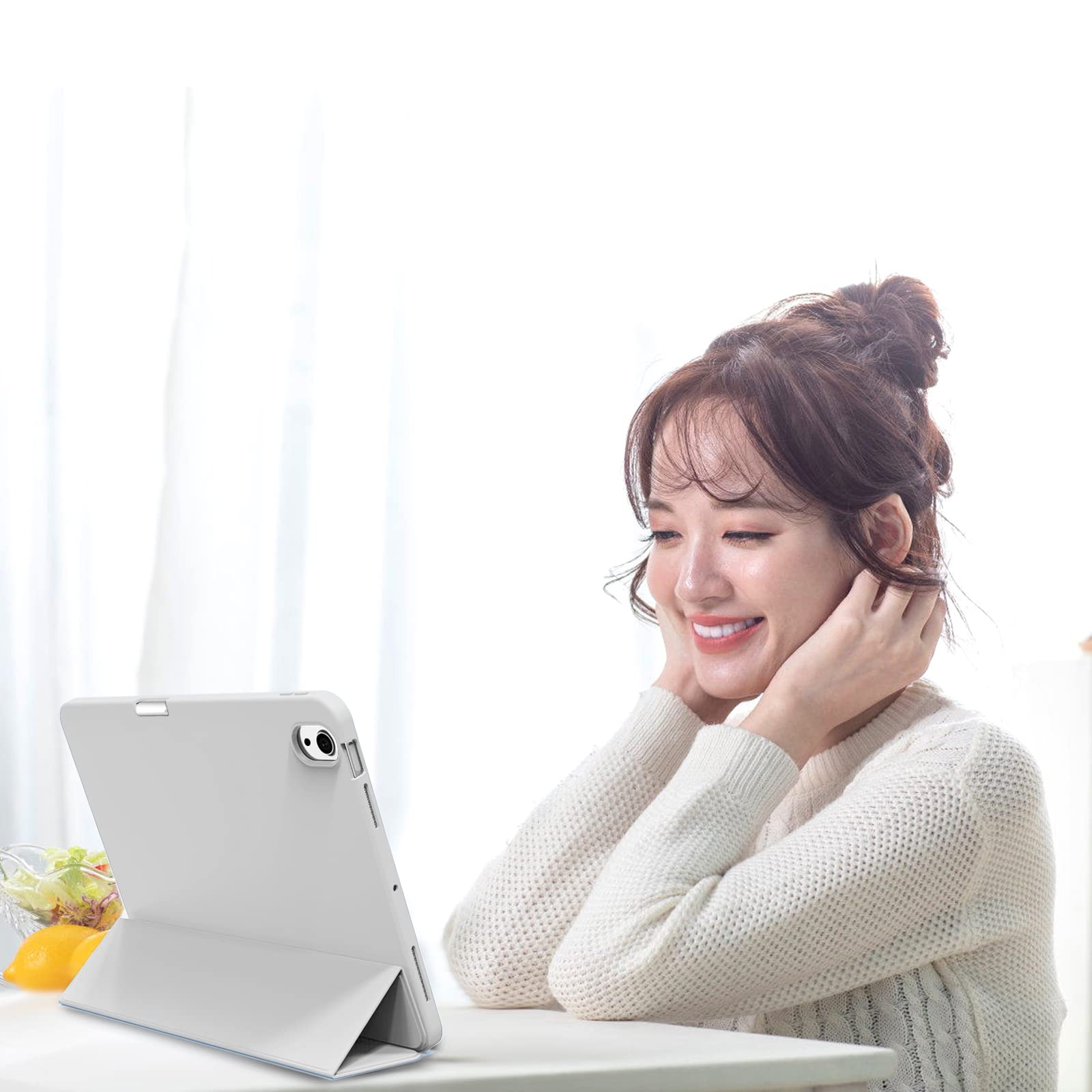 KenKe iPad Air 11インチ ケース (M3/M2、2025/2024) iPad Air 第5/4世代 ケース 2022/2020発売 10.9インチ 軽量 柔らかいシリコン TPU材質 ペン収納 カバー 3段階折り畳み可 スタンド マグネット付き 自動スリープ機能 Apple Pencil 収納可能 グレー