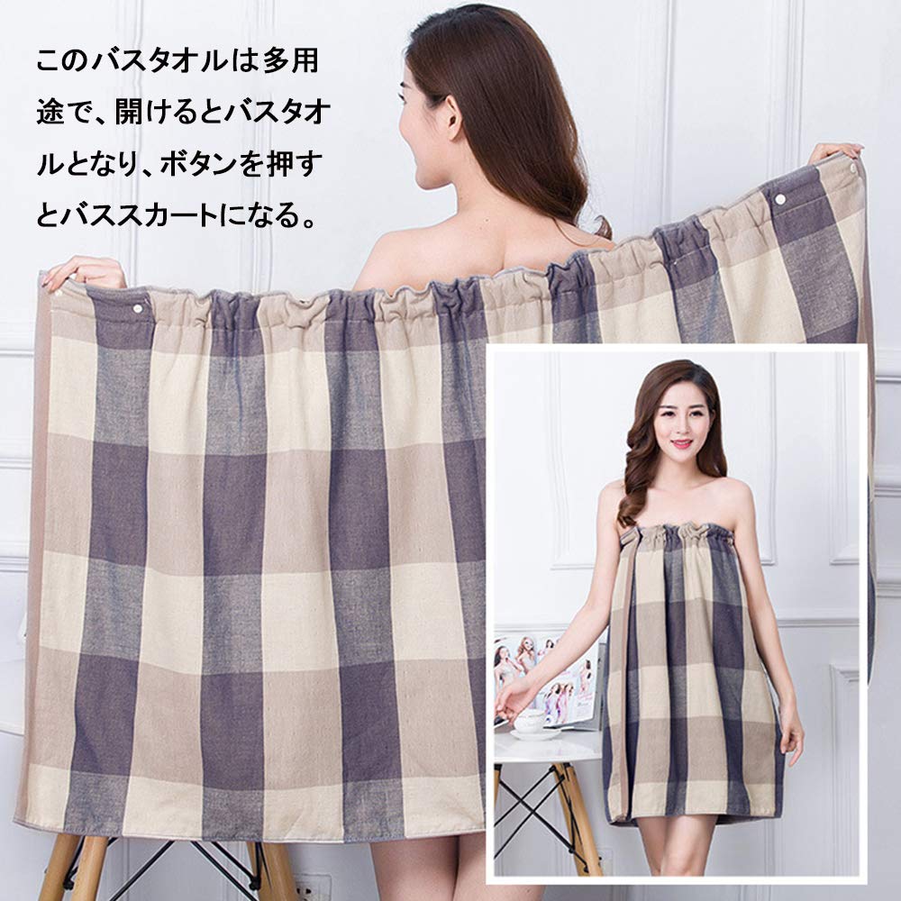 ラップタオル 大人 純綿ガーゼ 格子縞 バスタオル 大判 速乾タオル 吸水タオル バスローブ レディース ずり落ちないボデイタオル 便利 お風呂上がり タオルワンピース プールタオル 温泉 ジム エステ 70*140cm (ブルー)