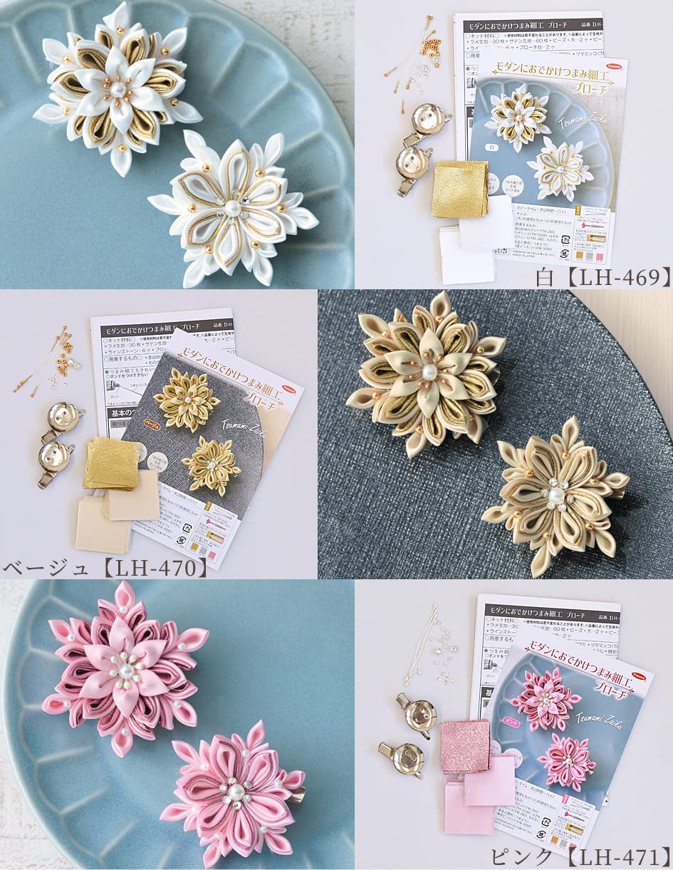 タカギ繊維 モダンにおでかけつまみ細工ブローチ白 LH469