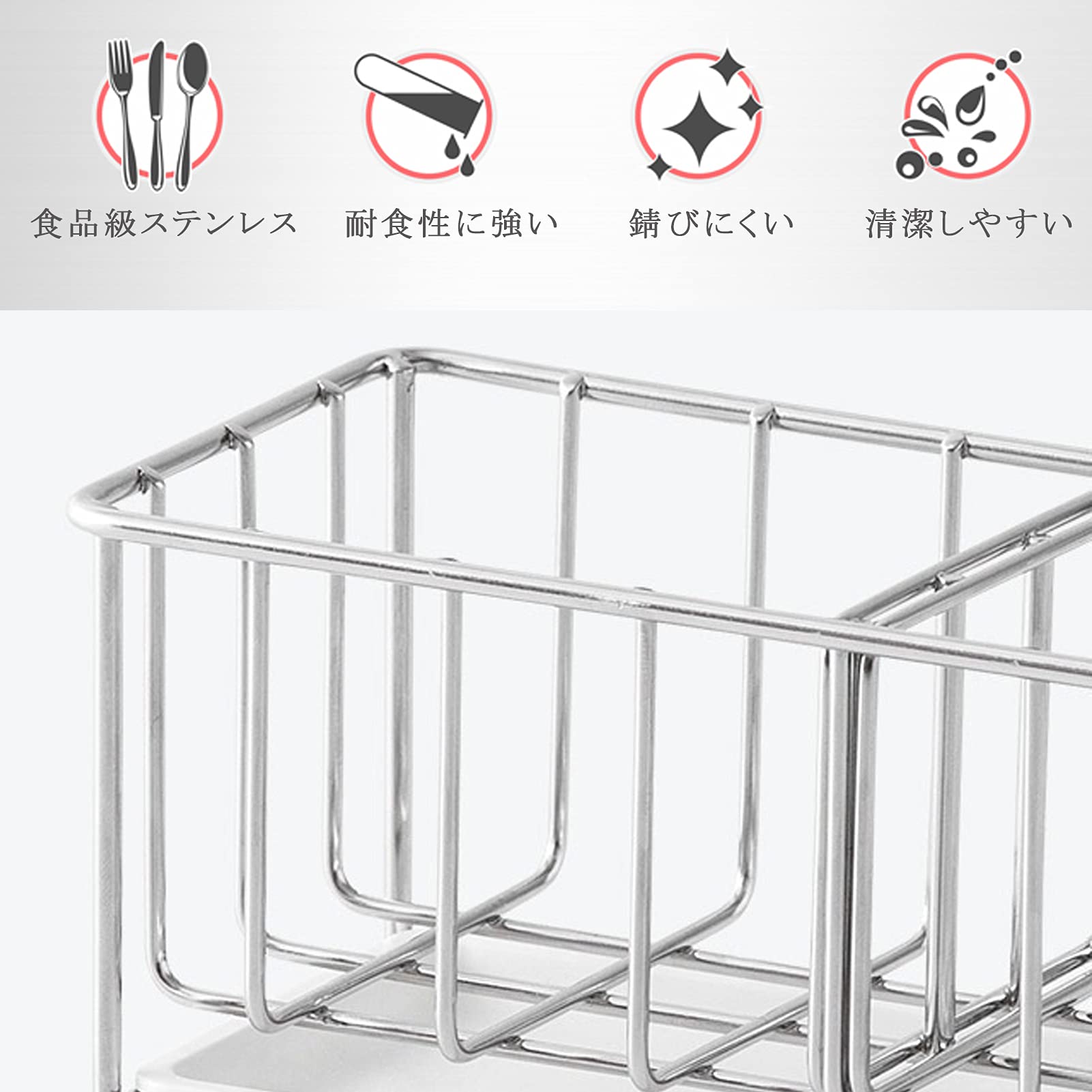 【滑り止め】底部の4個の足に滑り止めシリコン製の脚カバーキャップ付いて、直接に流し台に置いても、カビ水垢がつくことを防ぎます。受け部が高い位置にあるので通気性がよく衛生的で、水切れも抜群(交換用のシリコン製脚カバーキャップが4個付きます)。