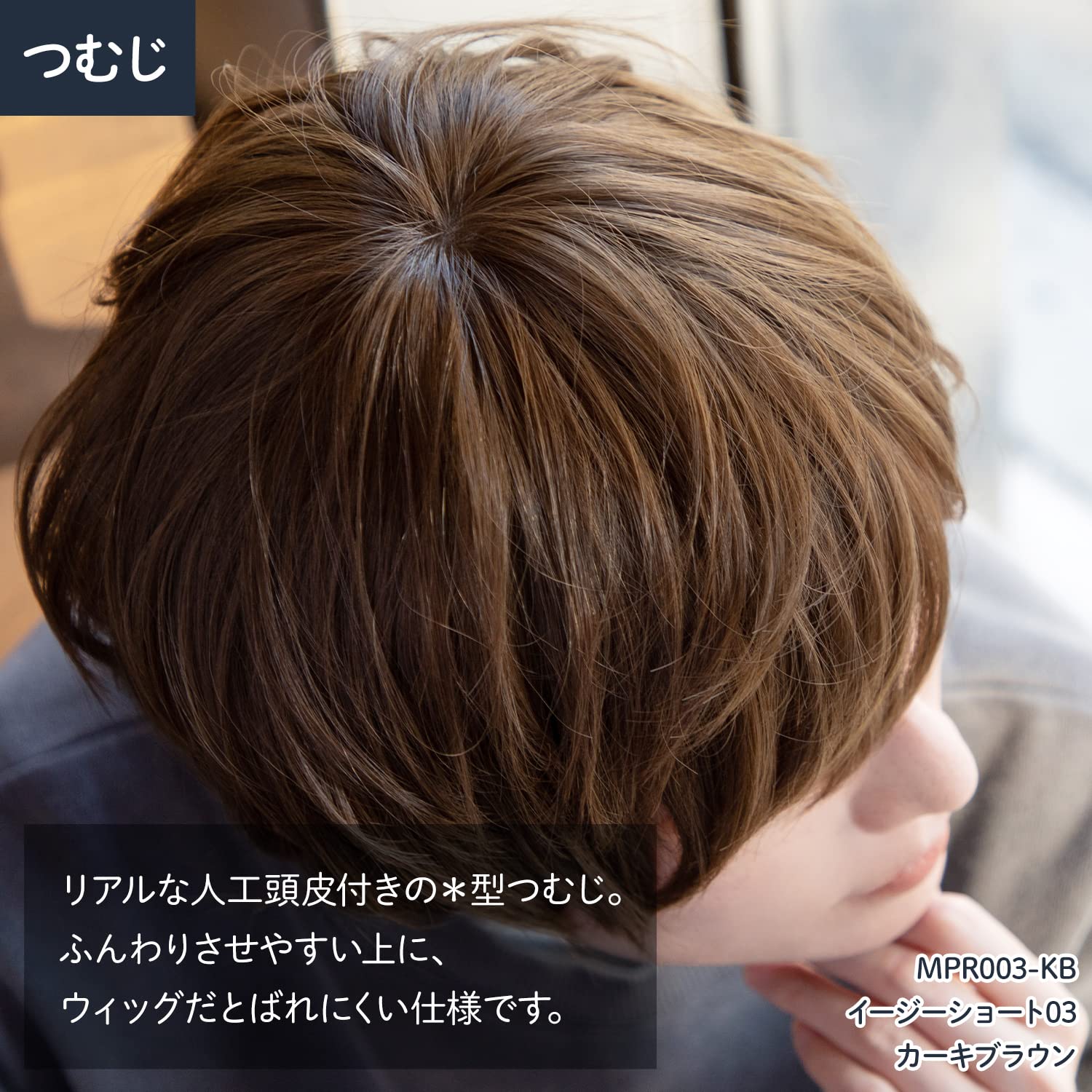 長時間の着用に適した伸びのよいウィッグベースを使用。