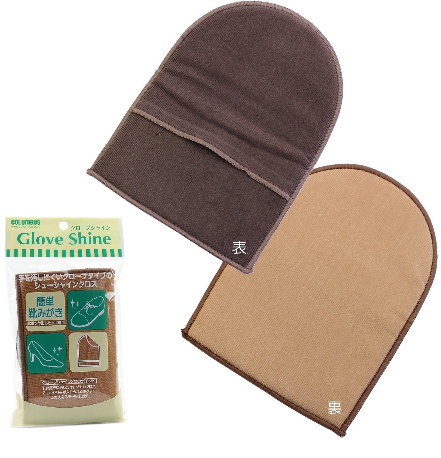 [コロンブス] シューケア 仕上げ ツヤだし 乾拭き用 グローブシャイン 13.5cm×19cm ブラウン