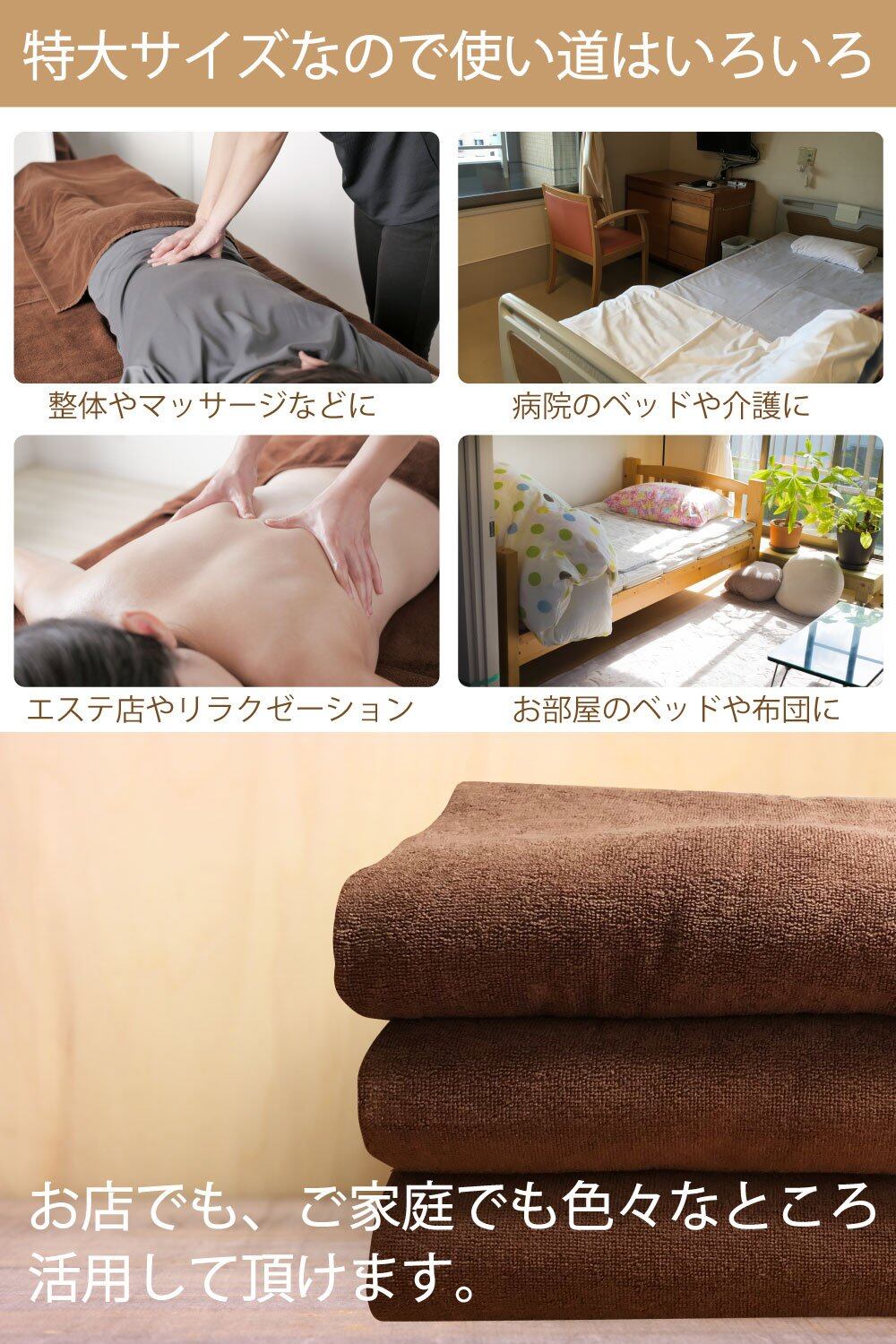 【エステ店・マッサージ店大絶賛】これまでの多くの店舗様にご購入いただき高評価をいただいております。高品質超大判タオルをぜひお試しください。