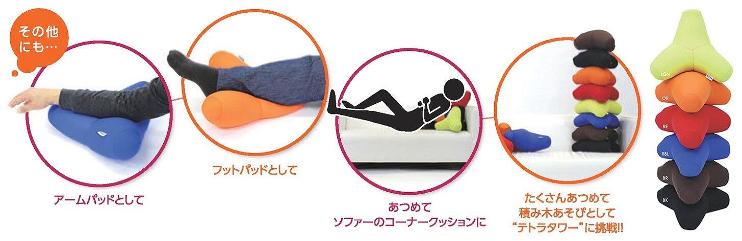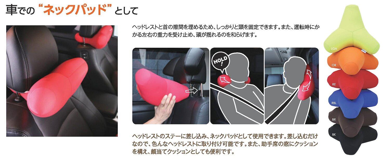 3本の脚が、頭・首・腰をしっかりキャッチ!ドライブでのネックパッドや、チェアでの背当てクッションに最適です。