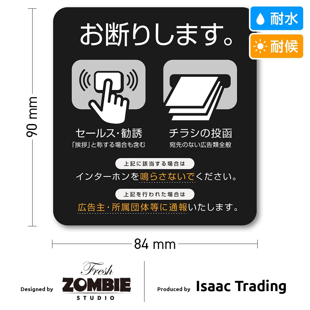 Isaac Trading セールス 勧誘 チラシ お断り アイコン ステッカー インターホンサイズ (84×90mm) (ブラック) STC-226