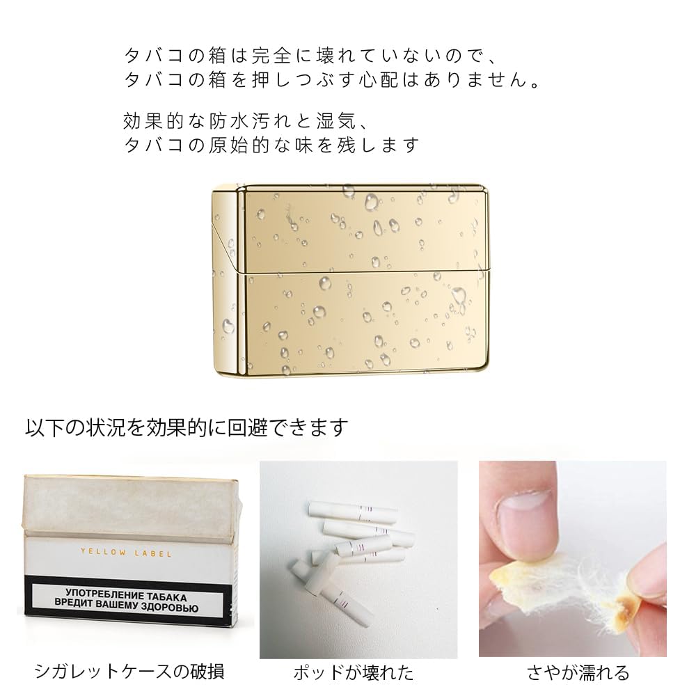 inkostudioシガレットケース 汎用交換 iqos用の ヒートスティックメッキケース タバコ専用カバー タバコ入れ20本入れ 対応 アイコス 互換 加熱式たばこ弾箱 衝突防止 携帯用 便利 薄型 (メッキゴールド)