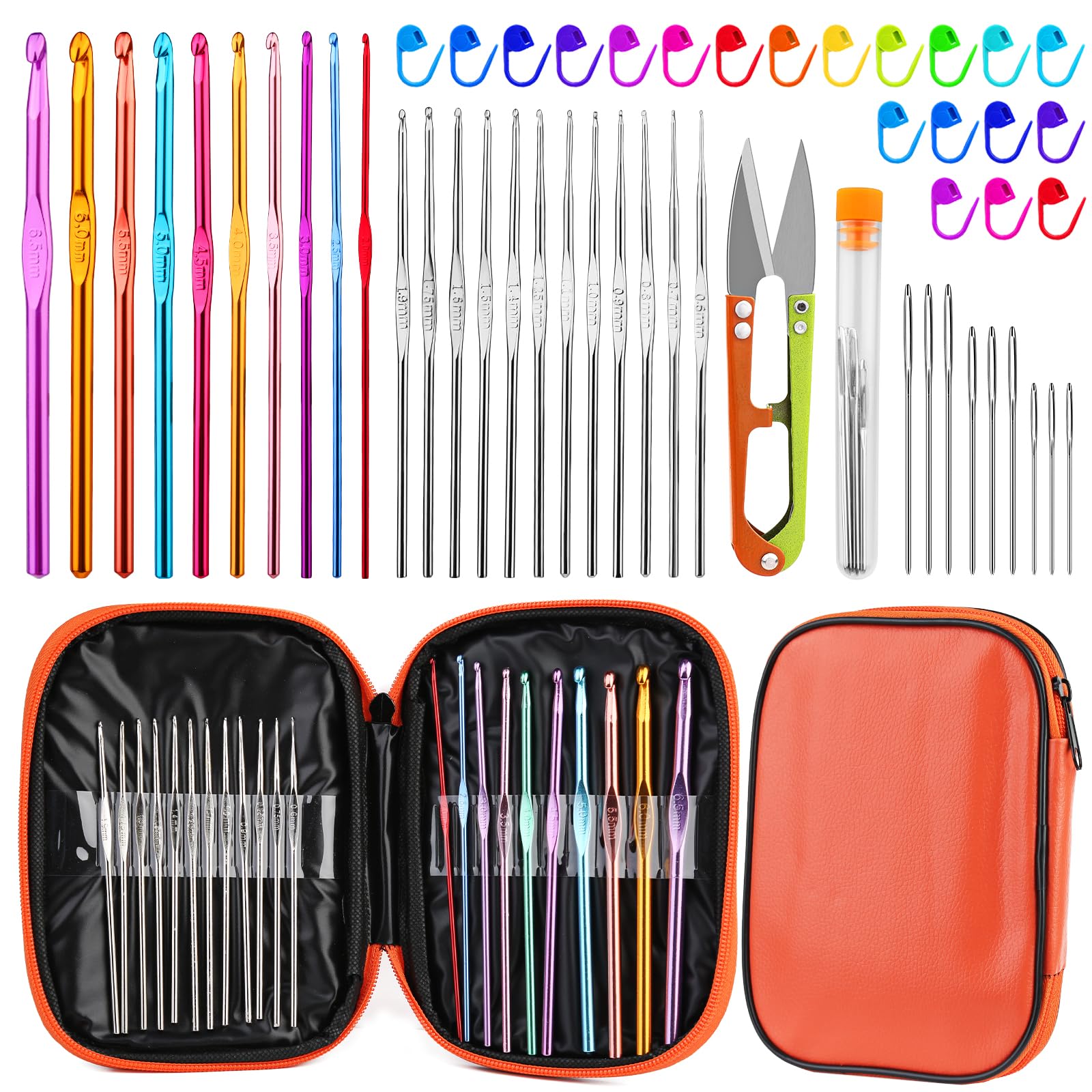 RMTIME 54個セットのかぎ針セット、収納ボックス付きかぎ針フックセット、人間工学に合ったニット針鈍針針跡マーカーDIY初心者手編み工芸美術ツール