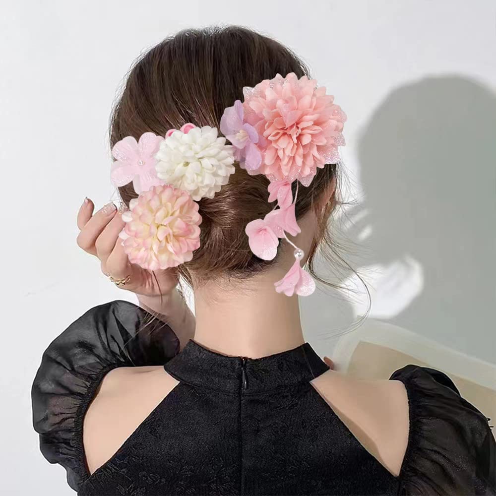 [サムコス] 成人式髪飾り 4点セット お花 ヘアアクセサリー 髪留め Uピン 成人式 結婚式 七五三 卒業式 夏祭り 花火大会 花見 お正月 披露宴 パーティー 髪飾り ヘッドドレス 浴衣 和風 和装 着物 レディース