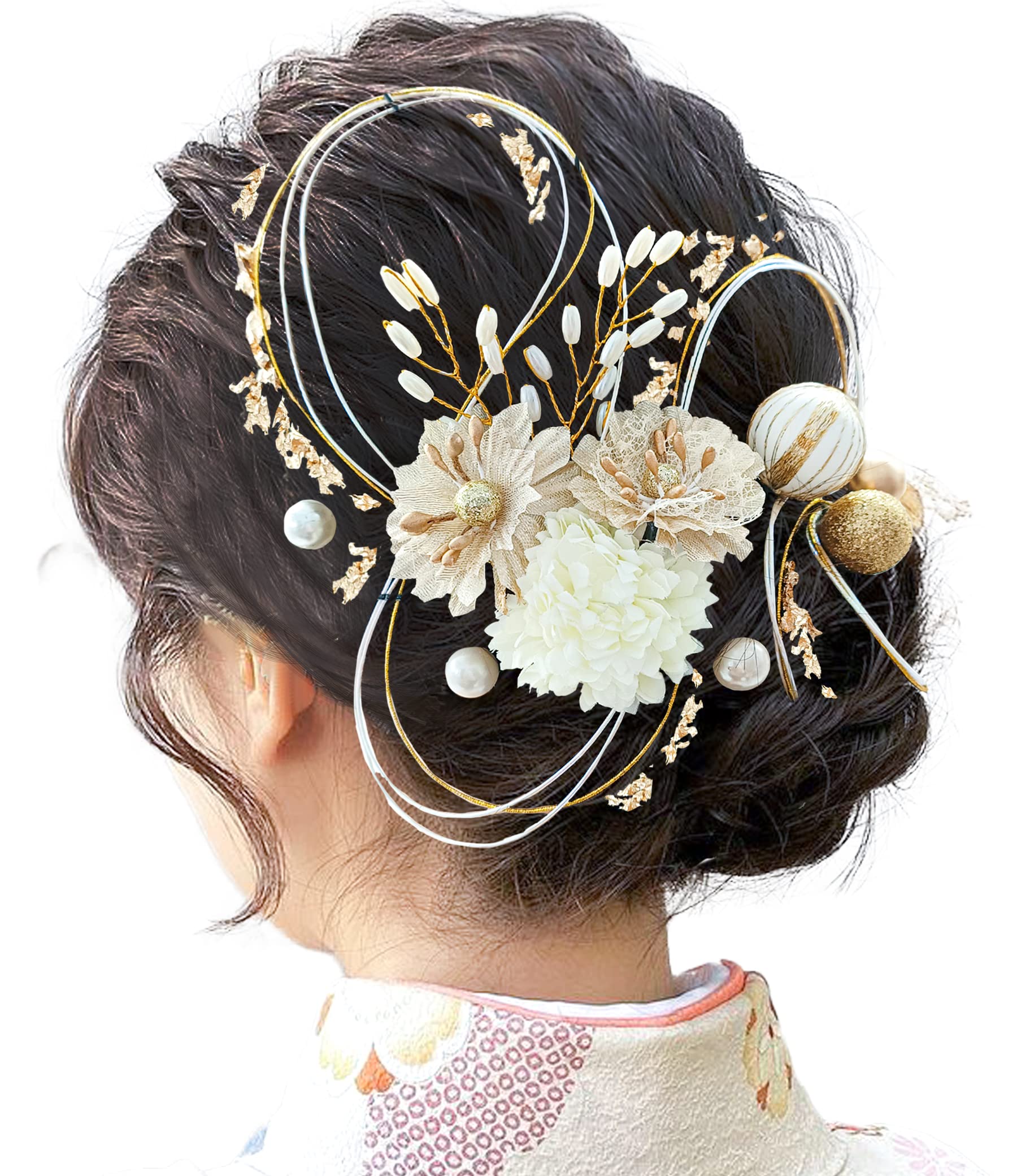 [JZOON] 髪飾り 成人式 水引 金箔 銀箔 組紐 人気 ロープ ゴールド シルバー ヘアアクセサリー 前撮り 振袖 卒業式 結婚式 和装 袴 着物 浴衣に ブライダル 花嫁 ヘッドパーツ J0010