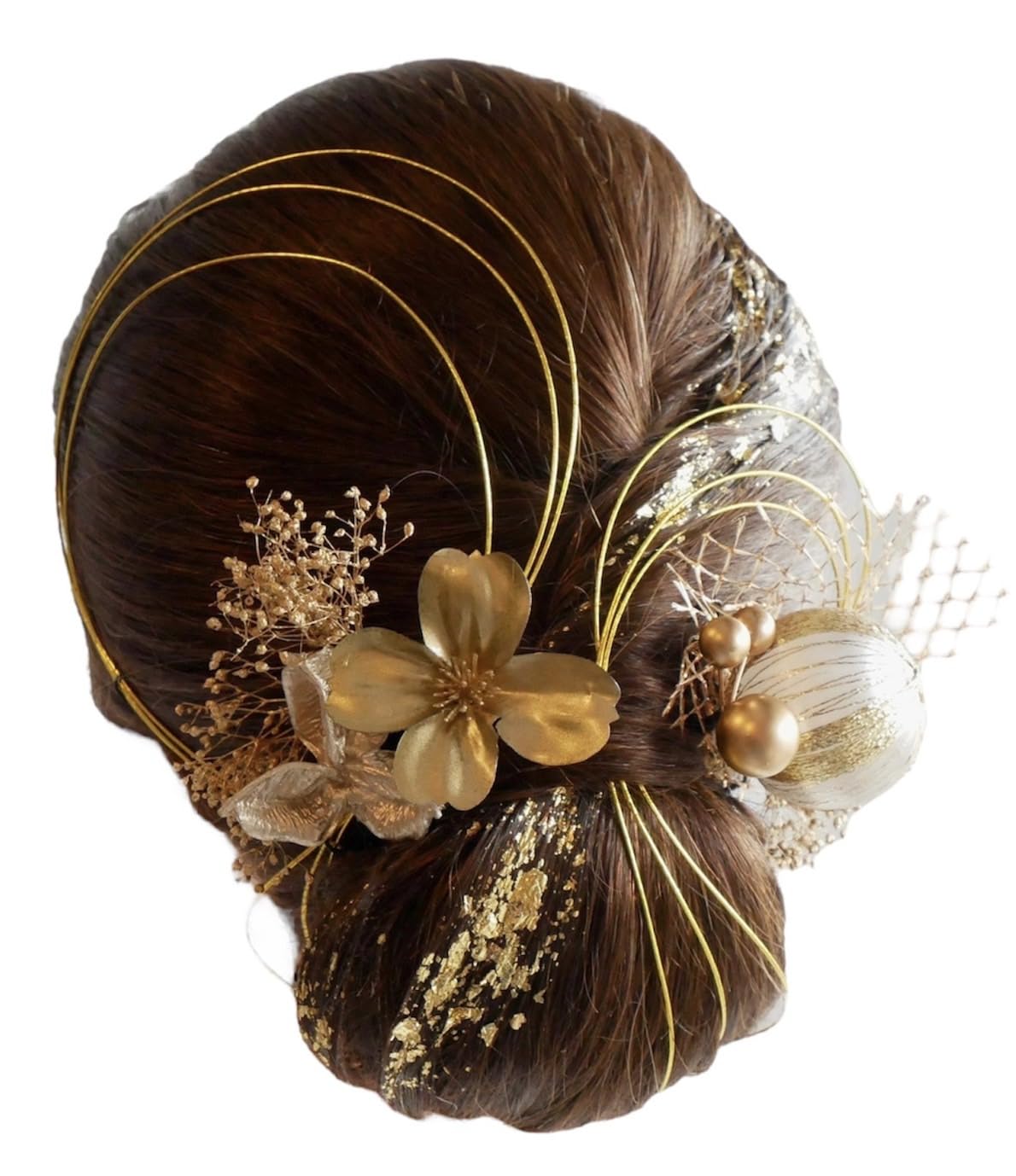 ︎パーツ詳細︎水引 ゴールド約90cm 3本、ドライフラワー 4パーツ、ゴールド小花、ゴールドパール、ゴールドメッシュ、和玉大白ゴールド、金箔シート