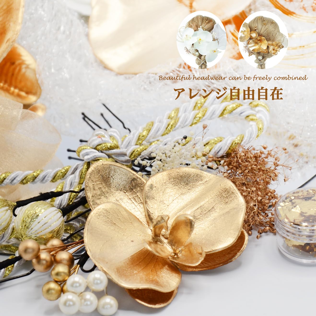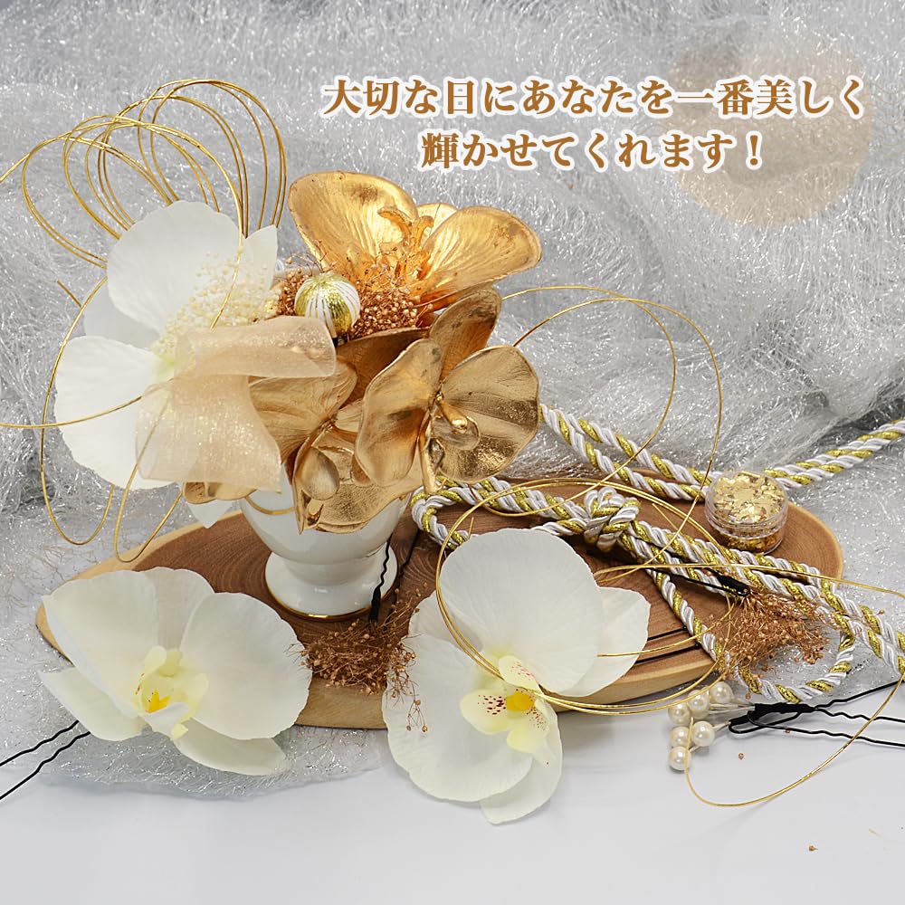 [ANJOU] 胡蝶蘭 髪飾り 成人式 髪飾り 和風 結婚式 白 和装ヘアアクセサリー 浴衣 Uピン式 つまみ細工 振袖向け 卒業式 着物 白無垢 花嫁 七五三 ドライフラワー プリザーブドフラワー