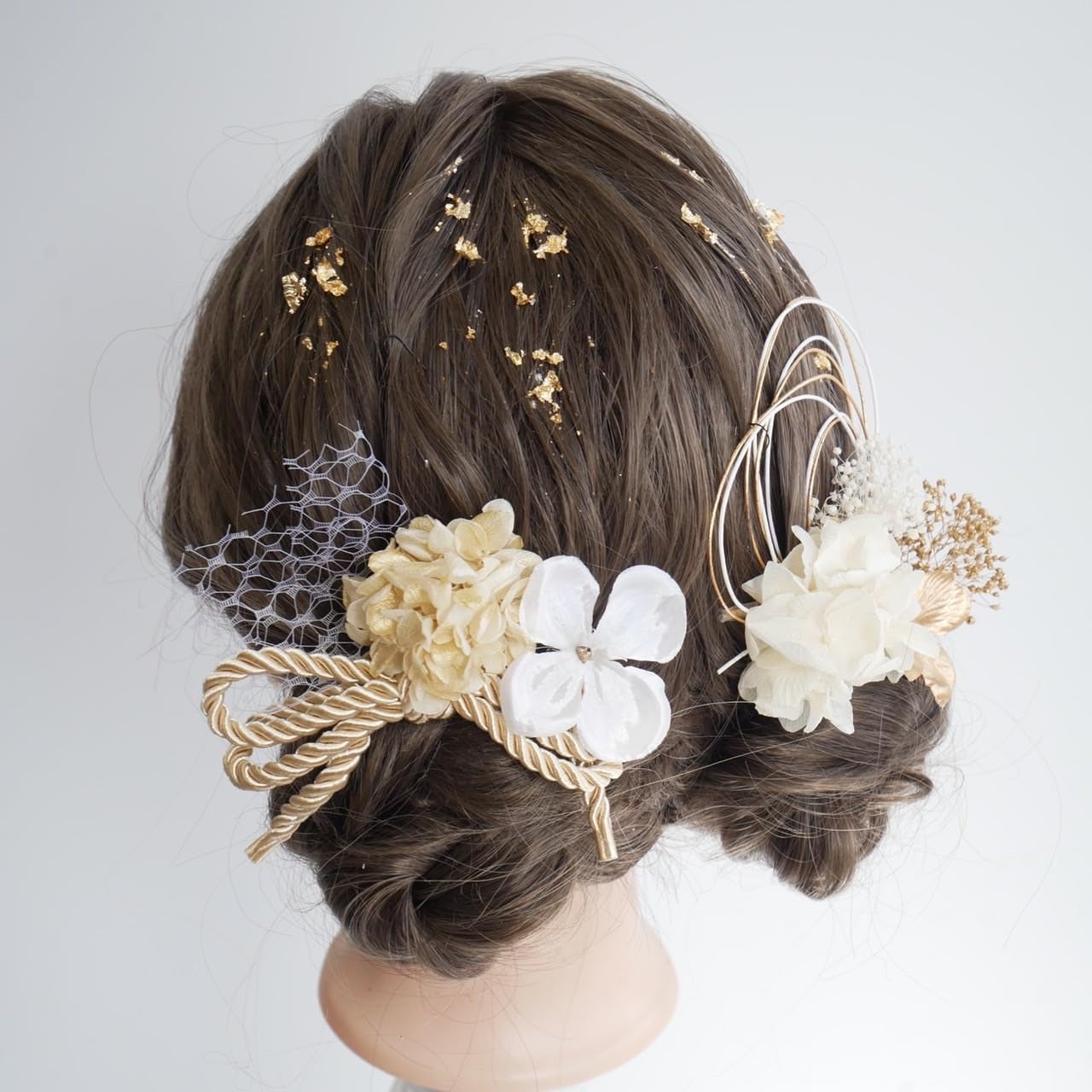 【Lomeri】 ロメリ ドライフラワー 水引 タッセル 袴 成人式 卒業式 髪飾り X10 (白ゴールド)