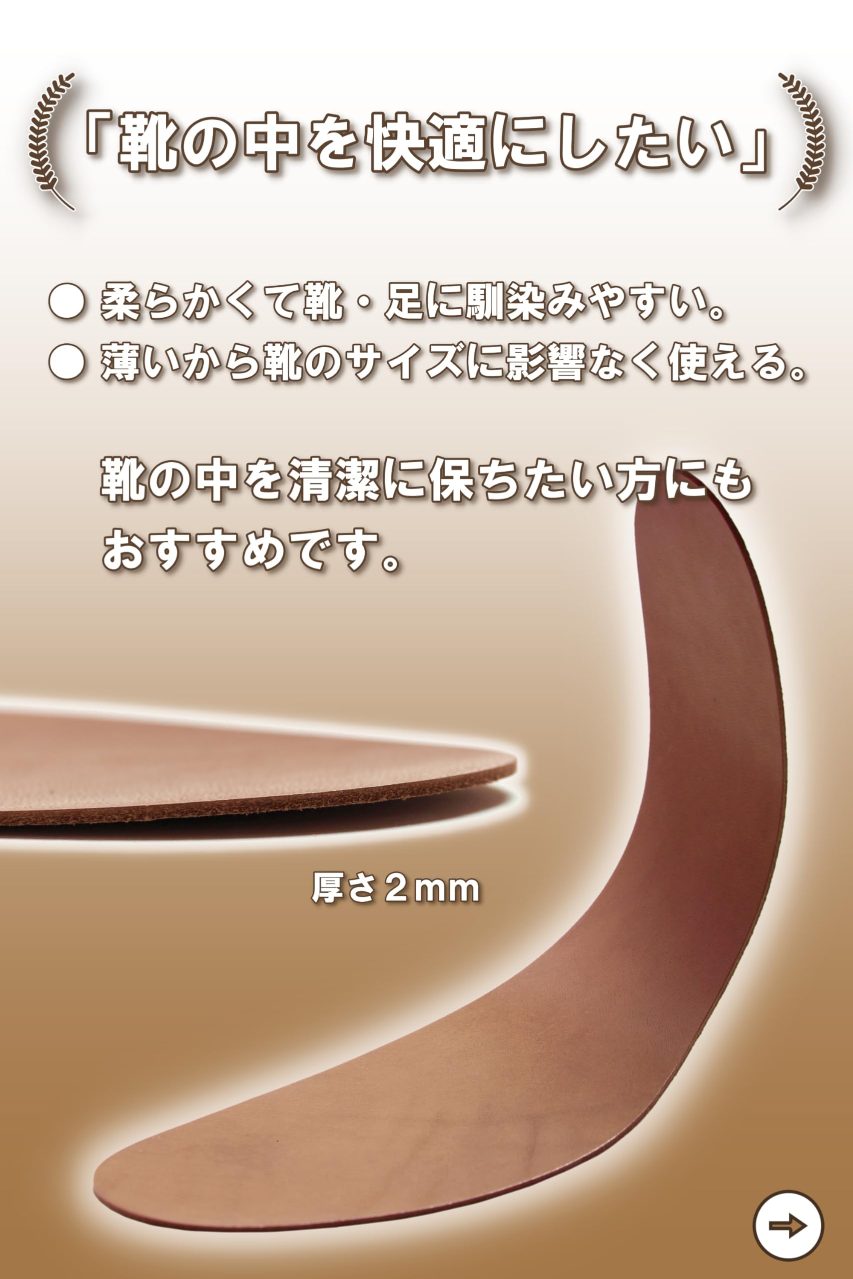 「栃木レザー」を使用した吸湿性に優れたインソールです。