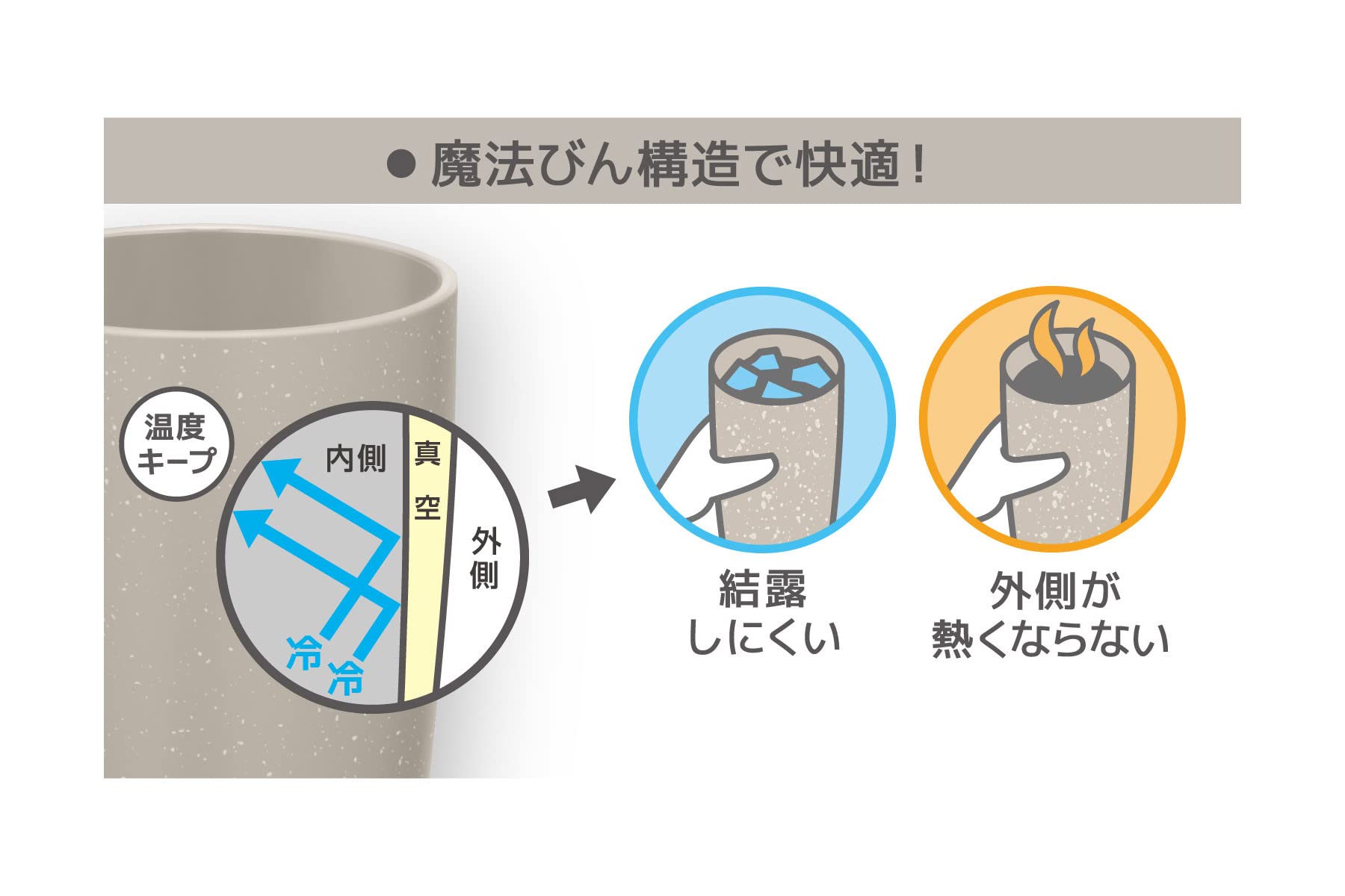 ●ステンレス魔法びん構造で冷たさ・温かさ長持ち