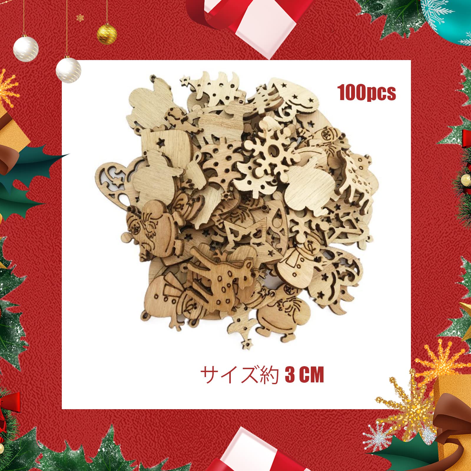 クリスマス オーナメント 木製 100個 雪の結晶 クリスマスツリー 雪だるま トナカイ サンタクロース 木材チップ スライス ペンダント クリスマスツリー オーナメント 北欧 クリスマス 飾り DIY手作り (ミックス)