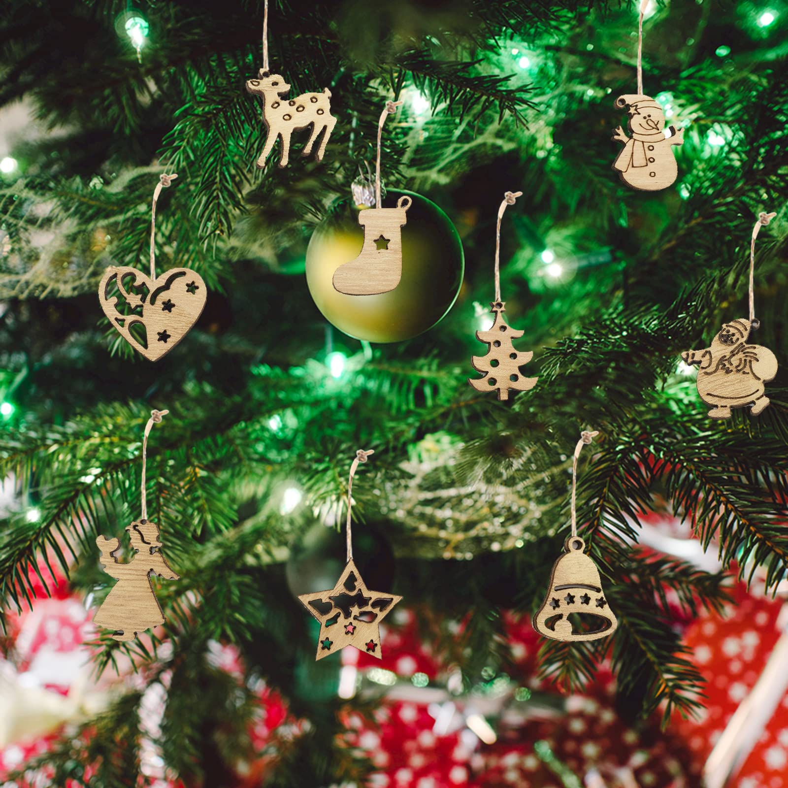 【木製のクリスマス飾り】ハート、靴下、雪の結晶、クリスマスツリー、雪だるま、ベル、トナカイ、サンタクロースなどさまさまなペンダントが揃っています。子供た ちはこれらの木製の工芸品に描くことができ、DIYの喜びを体験してください。