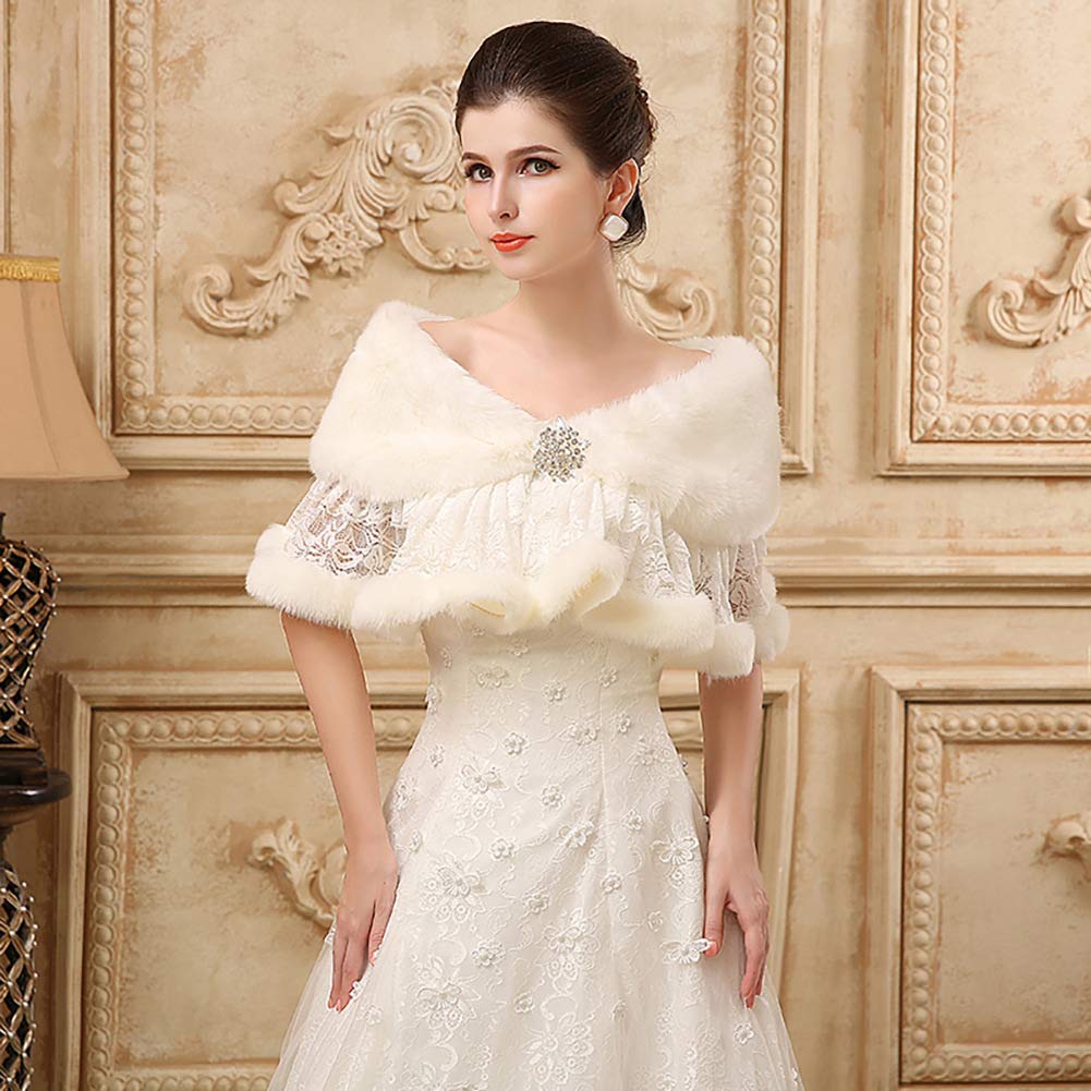 [SYitong] レディース ショール結婚式ボレロ ファー ストール 秋冬 無地 成人式ショール 花嫁 ファー ショールドレスウエディング 肩掛け二次会 フォーマル 演奏会 ファーレース 披露宴 パーティー ケープ ファーティペット