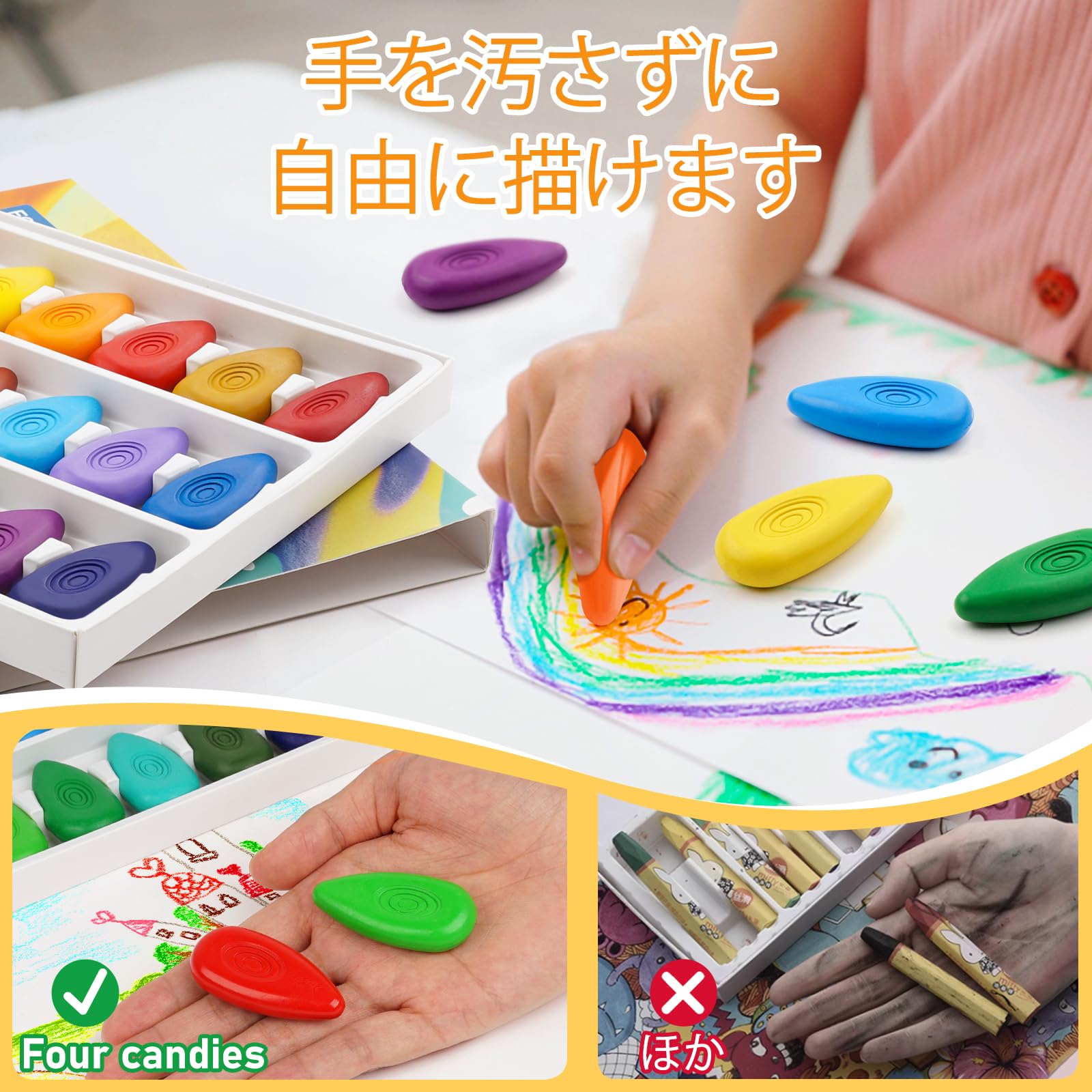 Four Candies クレヨン 12色 水滴型 可愛い 持ちやすい 手汚れない 折れにくい 塗り絵 水で落とせる お風呂 小学生 赤ちゃん 子供 お絵描きセット