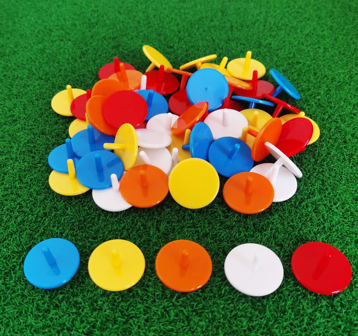 Adhere ゴルフ マーカー 50 個入 プラスチック製ゴルフボールポジションマーカー25mmフラットゴルフマーカーアクセサリー各種色混合