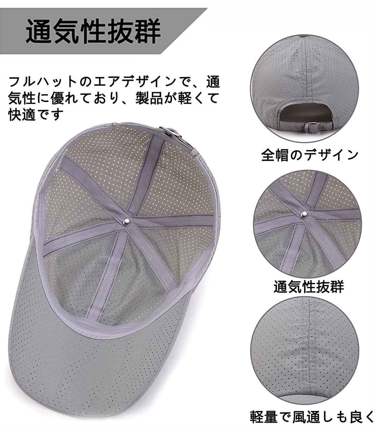 【通気性】キャップはメッシュ素材で、蒸れる心配なし、吸い上げられた汗をすばやく外気へ発散させて、通気性が抜群。着用中は帽子内の空気をよく通し、湿度の高い日本の夏の日除けに最適です!