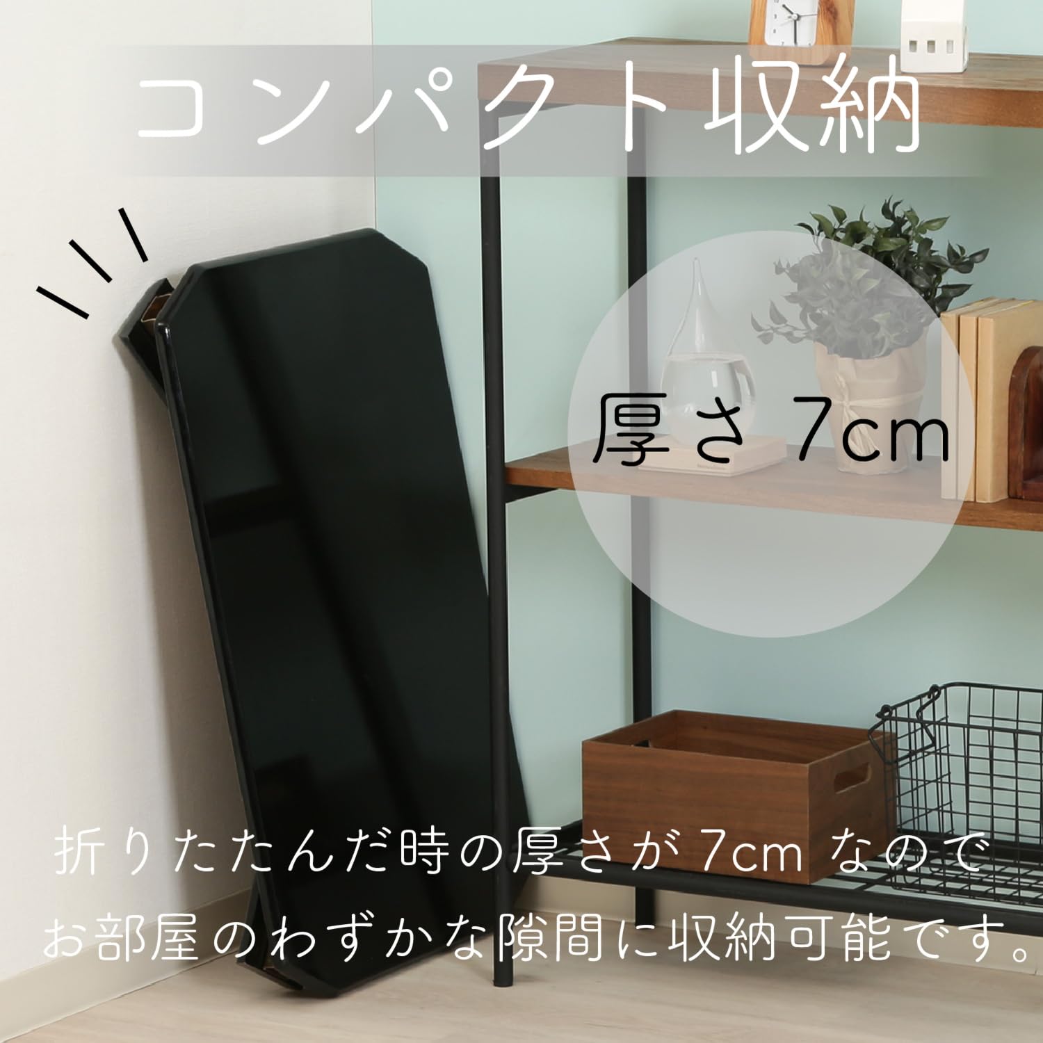 鏡面が美しい折りたたみローテーブルです。