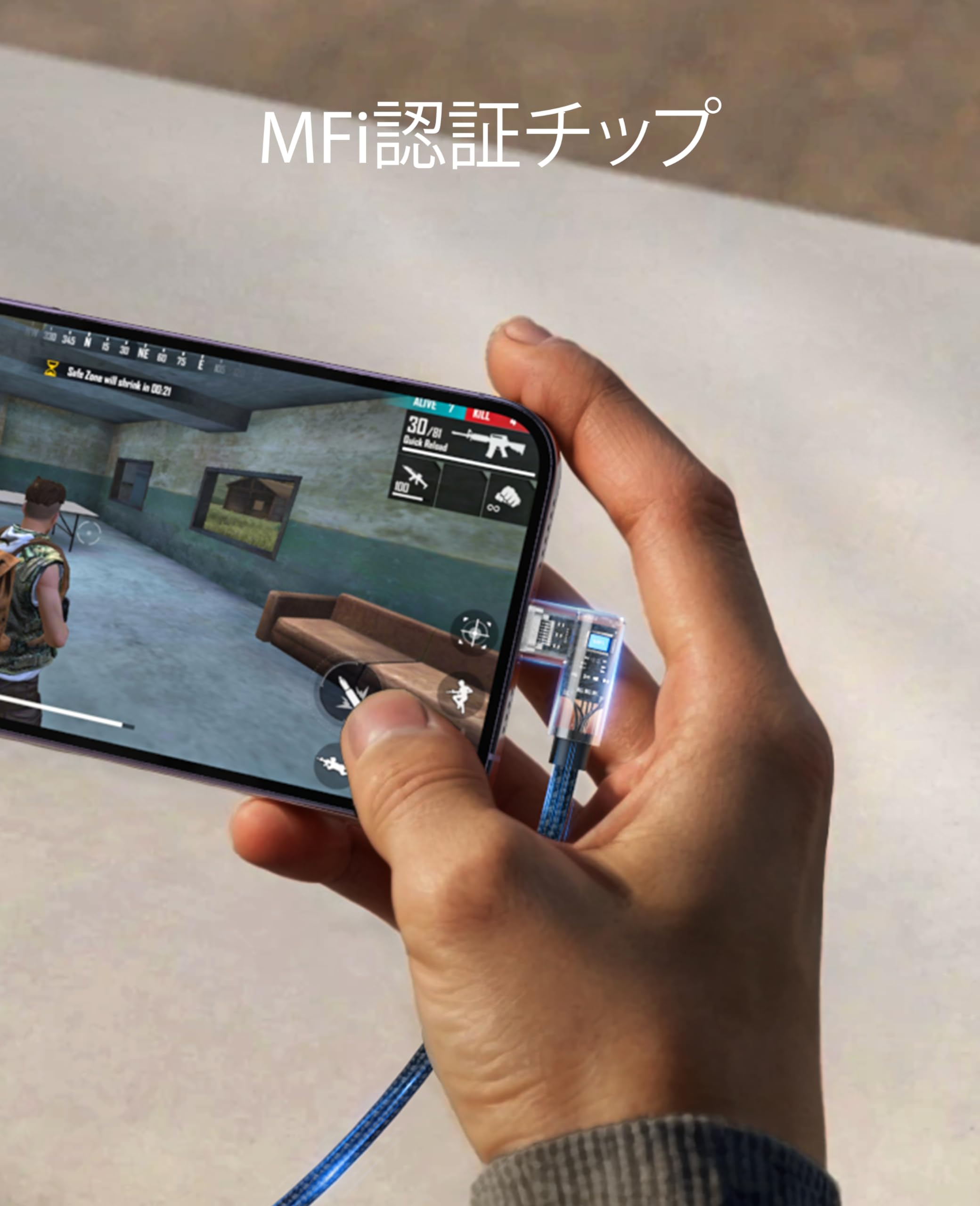短い ライトニングケーブル L字: 従来のケーブルと異なり、90度に曲がって「l字型」となっているので、充電の時には、ゲームの操作や動画を見るのは邪魔されない、コンセントやパソコンに繋いでも、ケーブルを無理やりに曲げる必要がなしで、スマホを横向きにして充電したり、ゲームしたり、スタンドやカバンに置いても便利になります。