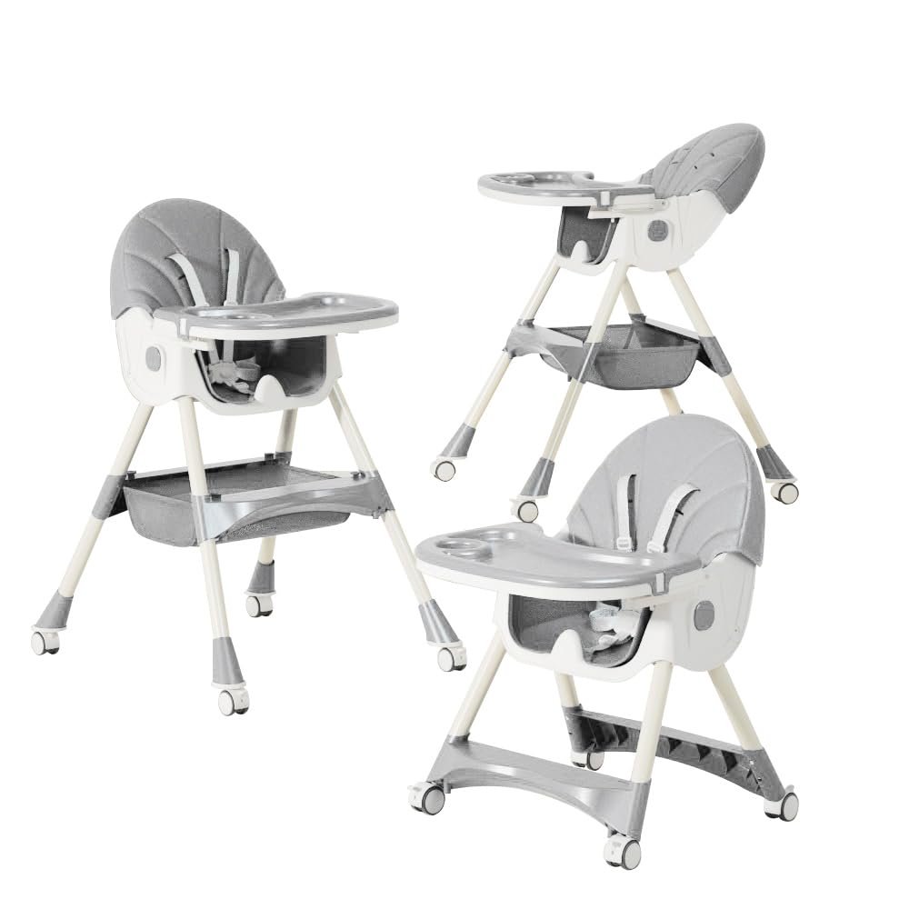 ZOOBLY ベビーチェア ハイチェア ローチェア ハイローチェア 折りたたみ 取り外し可能なキャスター 二段テーブル付き 五点式安全ベルト 高さ調節 離乳食 お食事椅子 テーブルチェア 赤ちゃん用 キッズチェア 子供イス 多機能 組立簡単 出産祝い 6か月~4歳 (グレー)