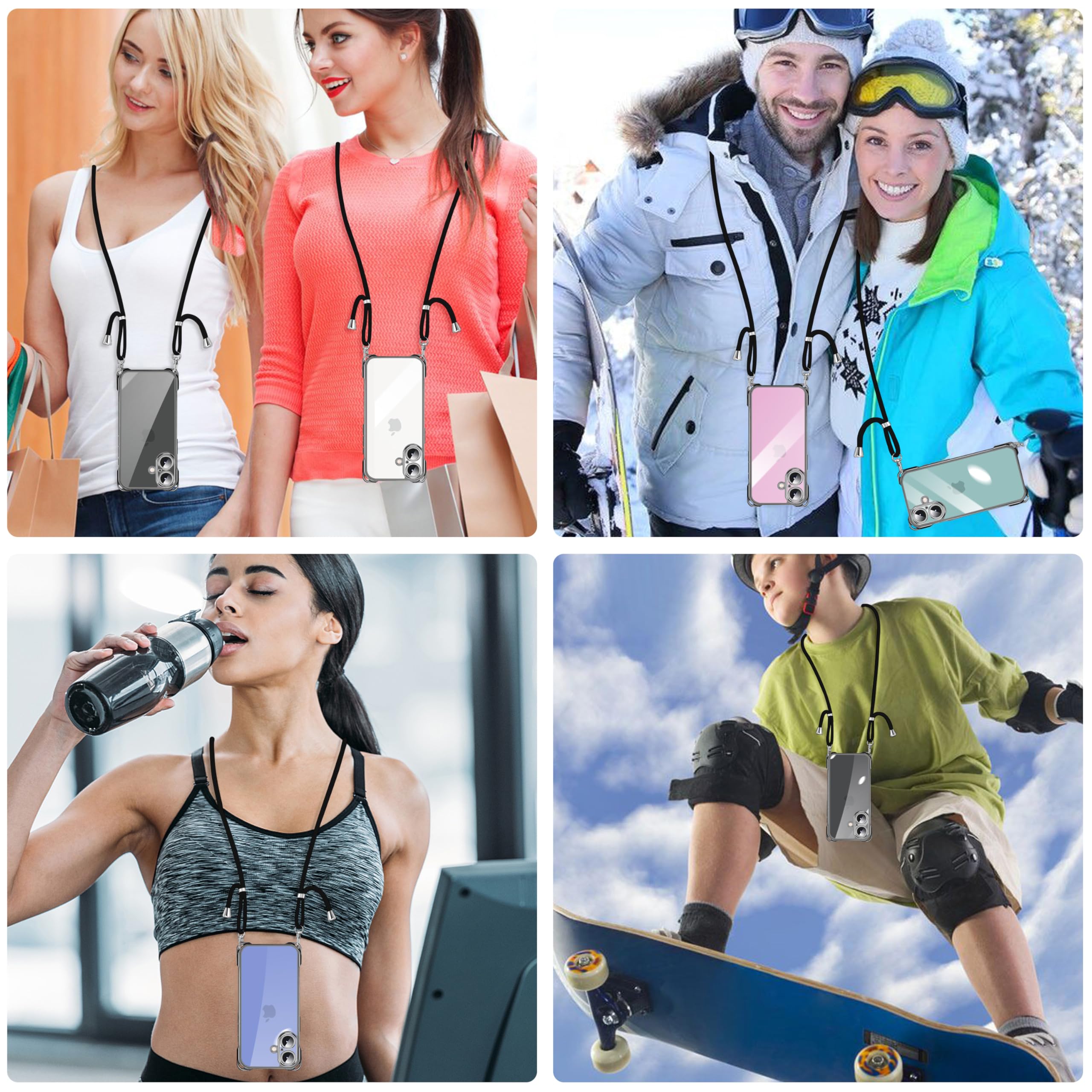 iPhone 16 用 ケース クリア ショルダー iPhone16 用 スマホケース アイフォン16 カバー 肩掛け 斜めかけ 縄掛けケース 透明 TPU 薄型 軽量 耐衝撃 携帯ケース 紐付き 斜めがけ 織りストラップ付き ネックストラップ ショルダー ケース 縦/横 2WAY 長さ調整可能 取り外し可能 落下防止 紛失防止 ワイヤレス充電対応 (ブラック)