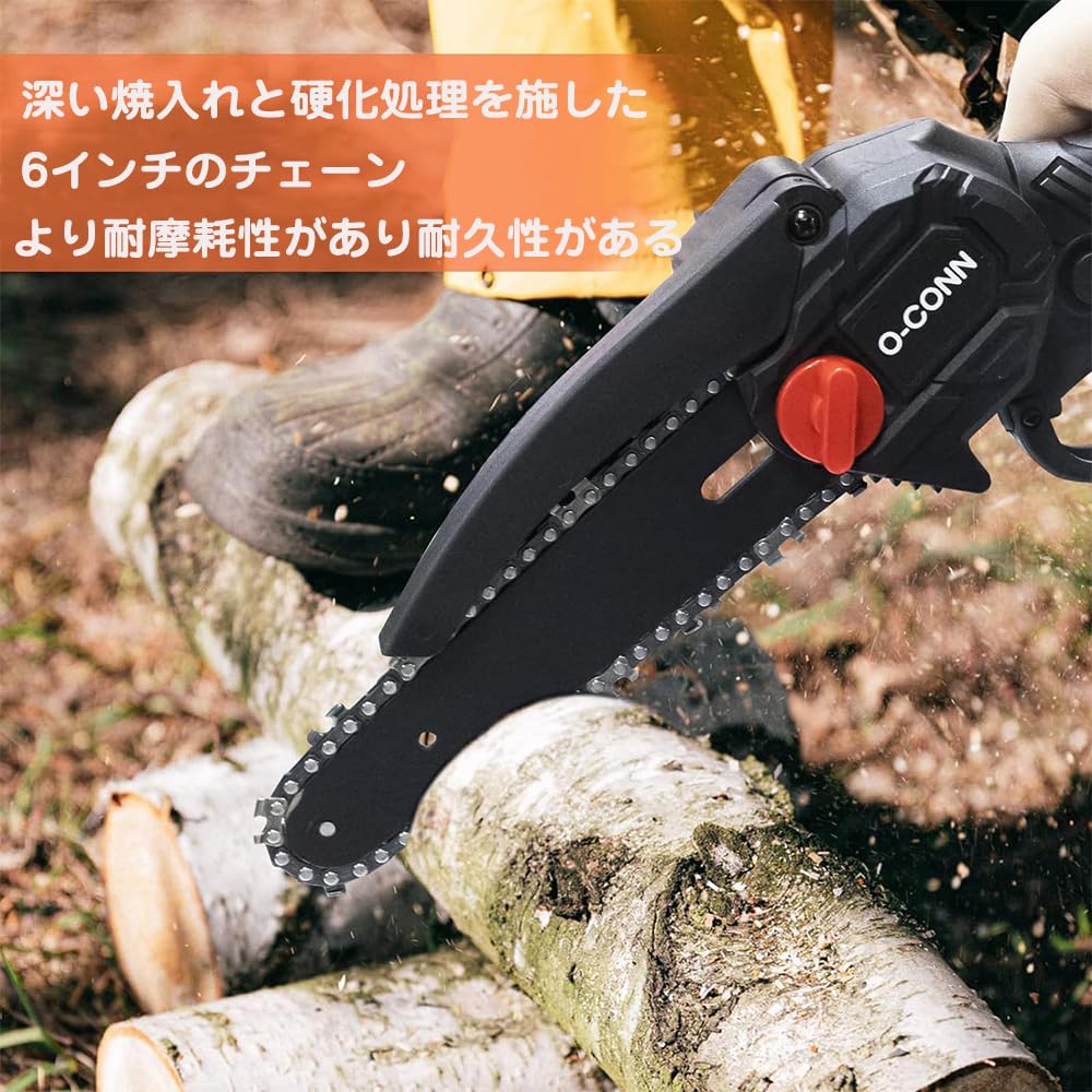 【優れた切れ味】: 木製の歯のデザインが枝にしっかりと食い込み、効率的かつスムーズに切断できます。高硬度のカービングチェーンは非常に耐久性があります。