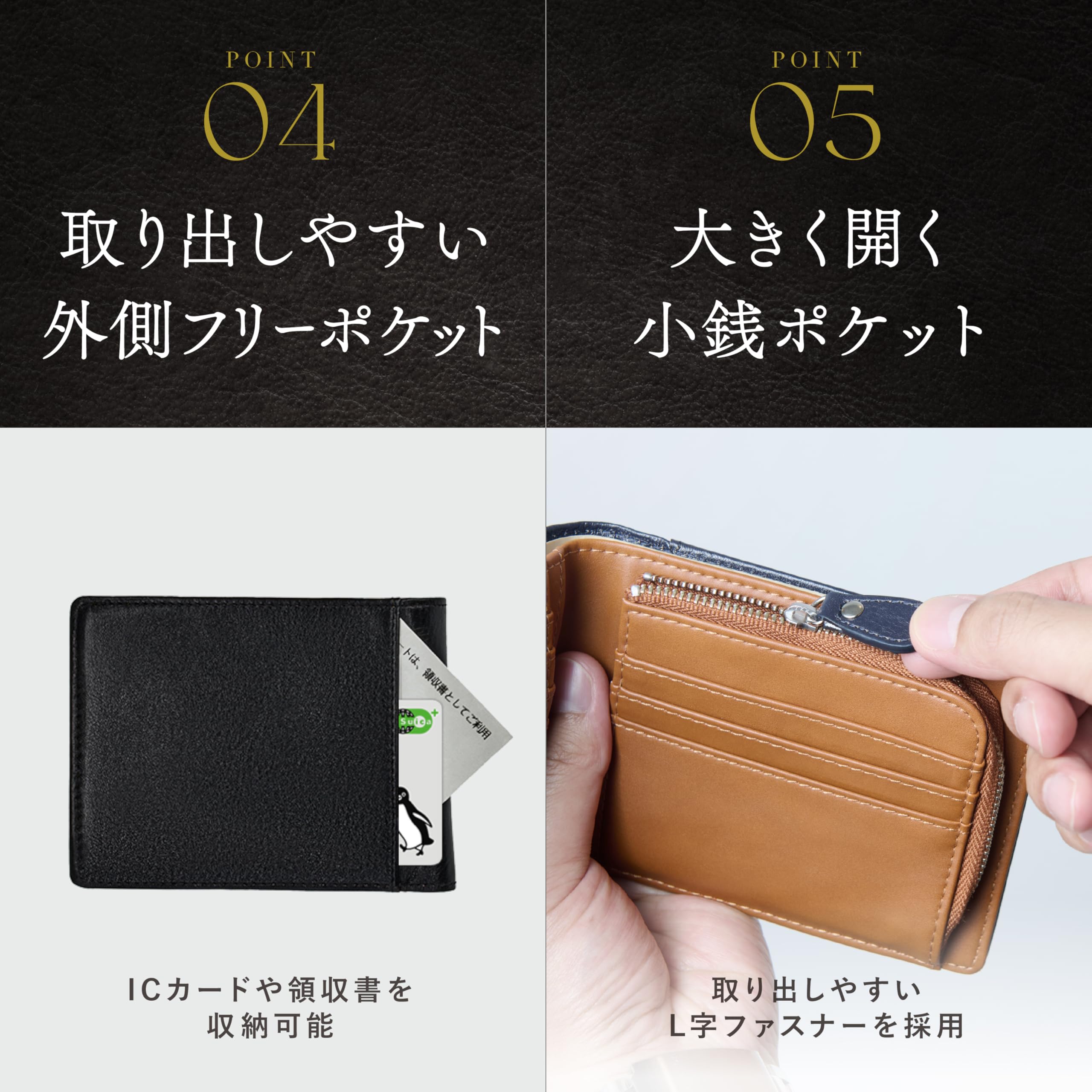【確かな品質】取り出しやすく、膨らみにくいL字ファスナーの小銭入れ、使い勝手にもこだわり、おかげさまで「GLEVIO(グレヴィオ)」の累計販売数は65万個を突破致しました。プレゼントとしても多くのお客様にお求めいただいていることから、オシャレなデザインの箱に入れてお届けしております。