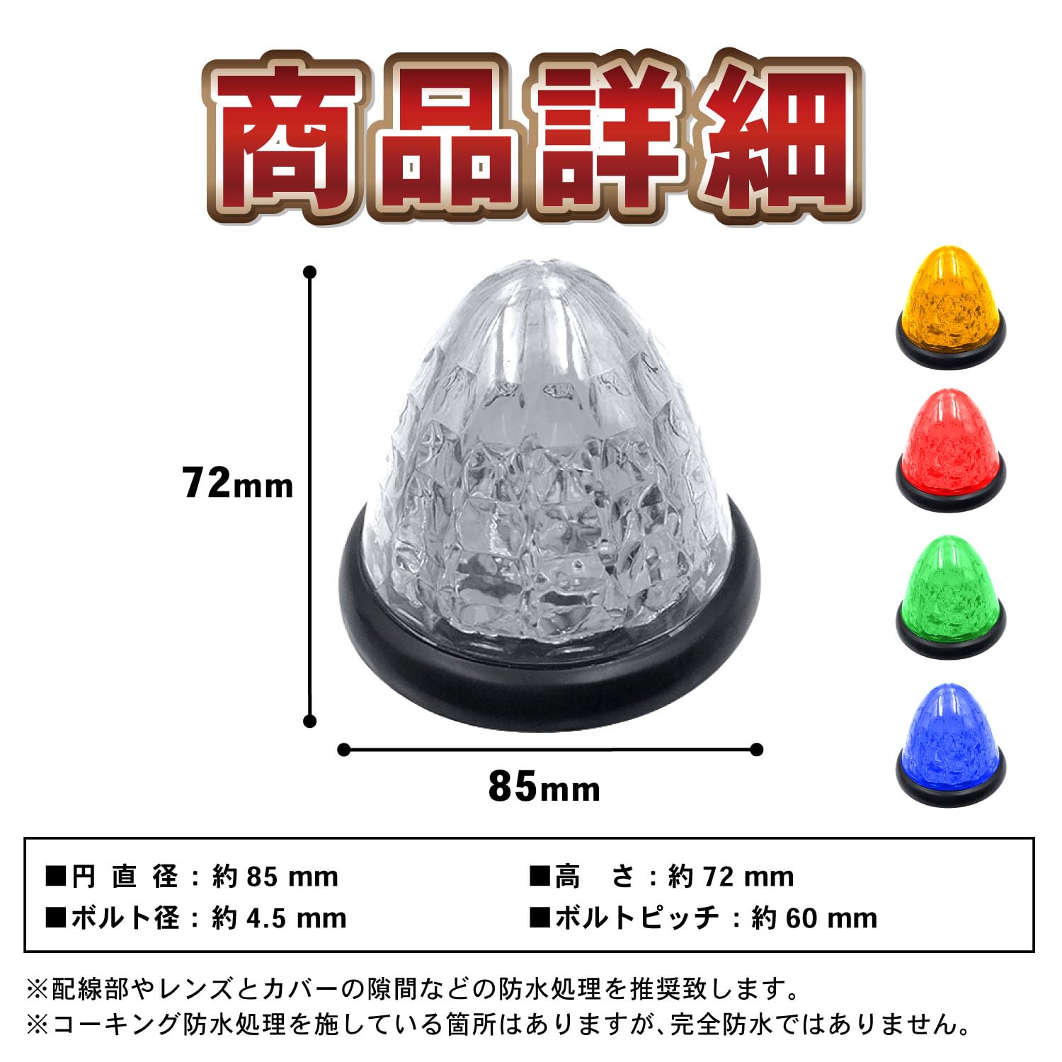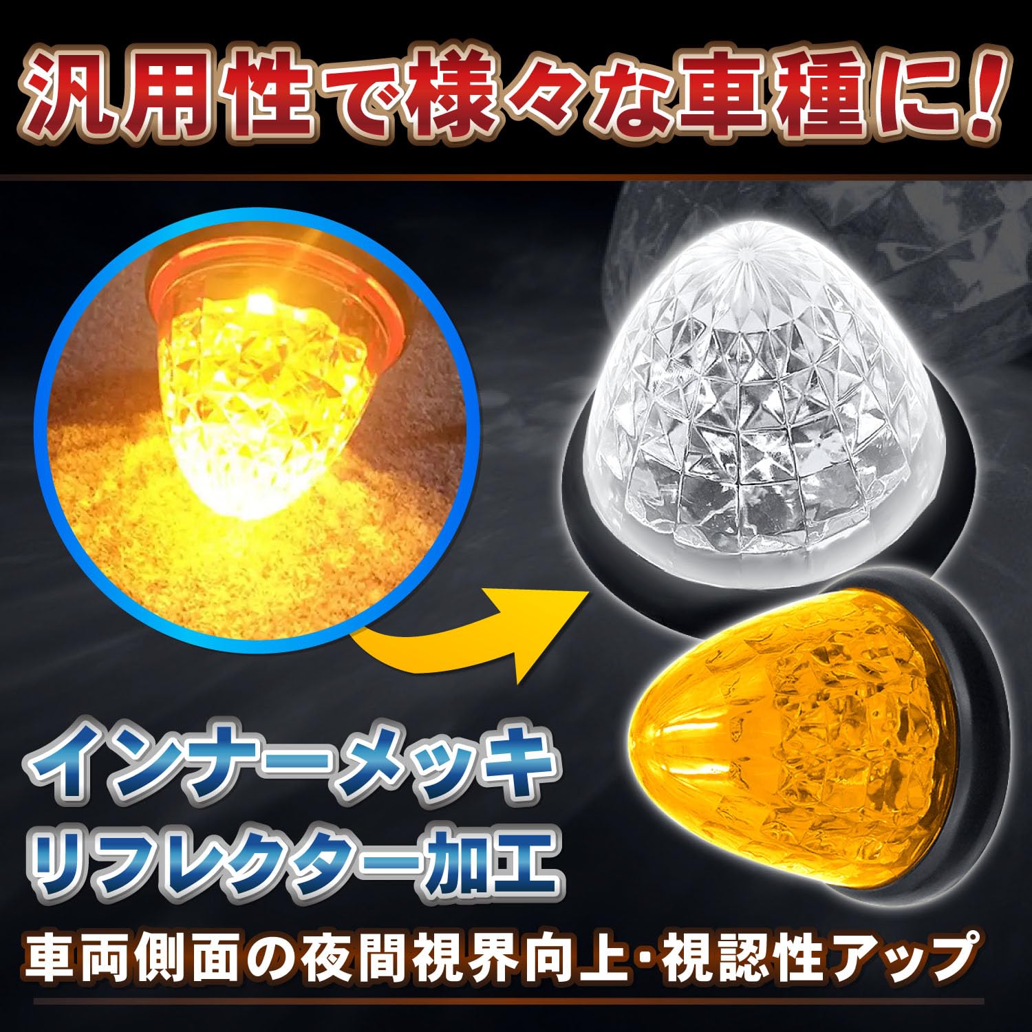 パワフルな明るさ 24V専用のこのマーカーランプは、16LEDと8面クリスタルカット仕様で、圧倒的な明るさを誇ります。夜間や悪天候の中でも、安全なトラック走行をサポートします。