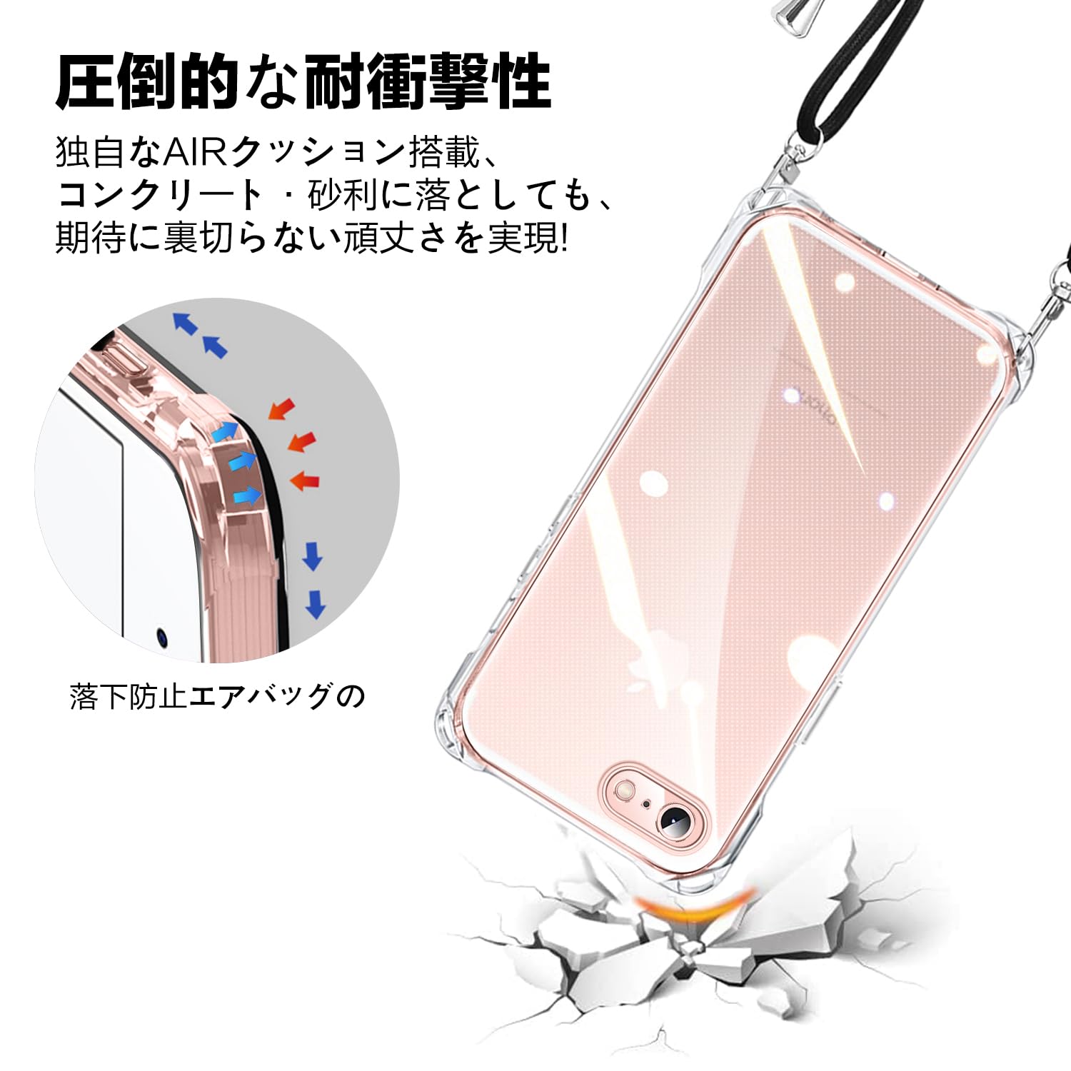 iPhone SE 第3/2世代 7 8 用 ケース クリア ショルダー iphonese 7 8 用 スマホケース アイフォン7 8 se2 se3 カバー 肩掛け 斜めかけ 縄掛けケース 透明 TPU 薄型 軽量 耐衝撃 紐付き 斜めがけ 織りストラップ付き ネックストラップ ショルダー ケース 縦/横 2WAY 長さ調整可能 取り外し可能 落下防止 紛失防止 ワイヤレス充電対応 (クリア)