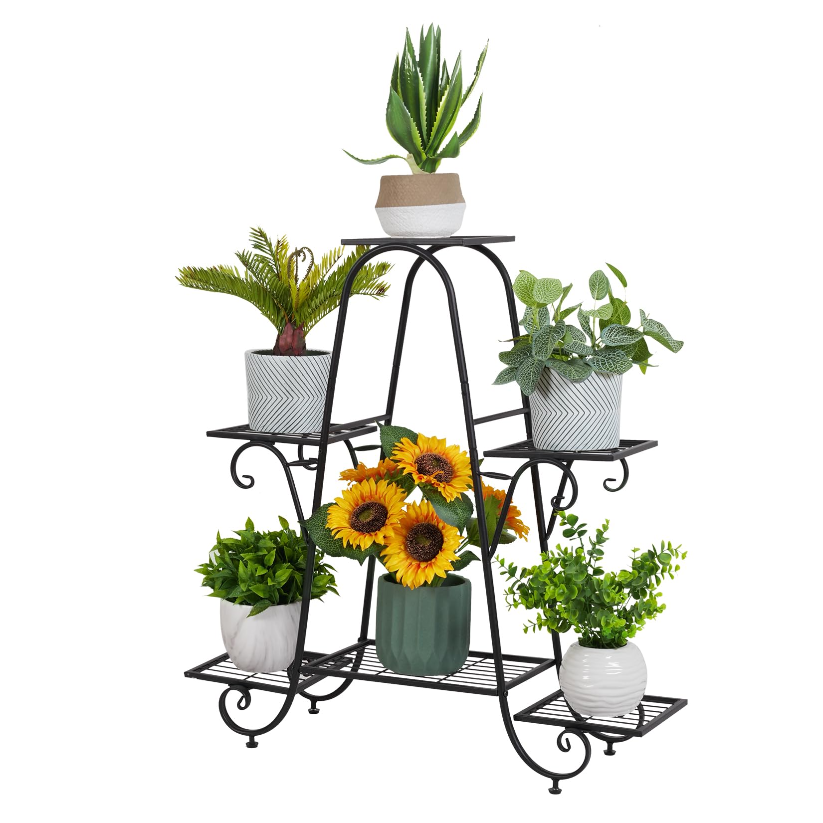 【大容量の大型植物棚】6つの棚板があり、6鉢以上の鉢植えを置ける大きな植物棚で、空間を有効活用できます。さまざまな種類の花や植物を自分のセンスで上手く飾ってみたい方に適しています