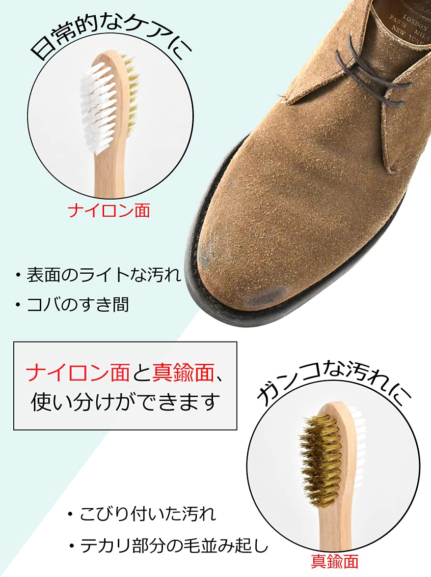 [レザーラブ] 両面使えるスエード製品用ブラシ 真鍮ハンドルブラシ ヌバック ムートン スニーカー ブーツ ジャケット 汚れ落とし Free