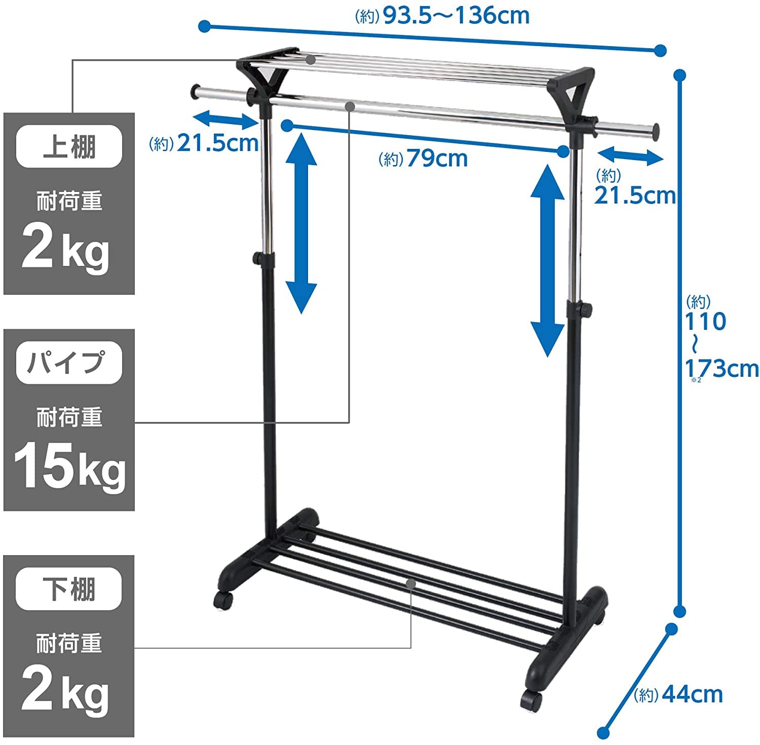 サイズ:幅93.5~136×奥行44×高さ110~173cm