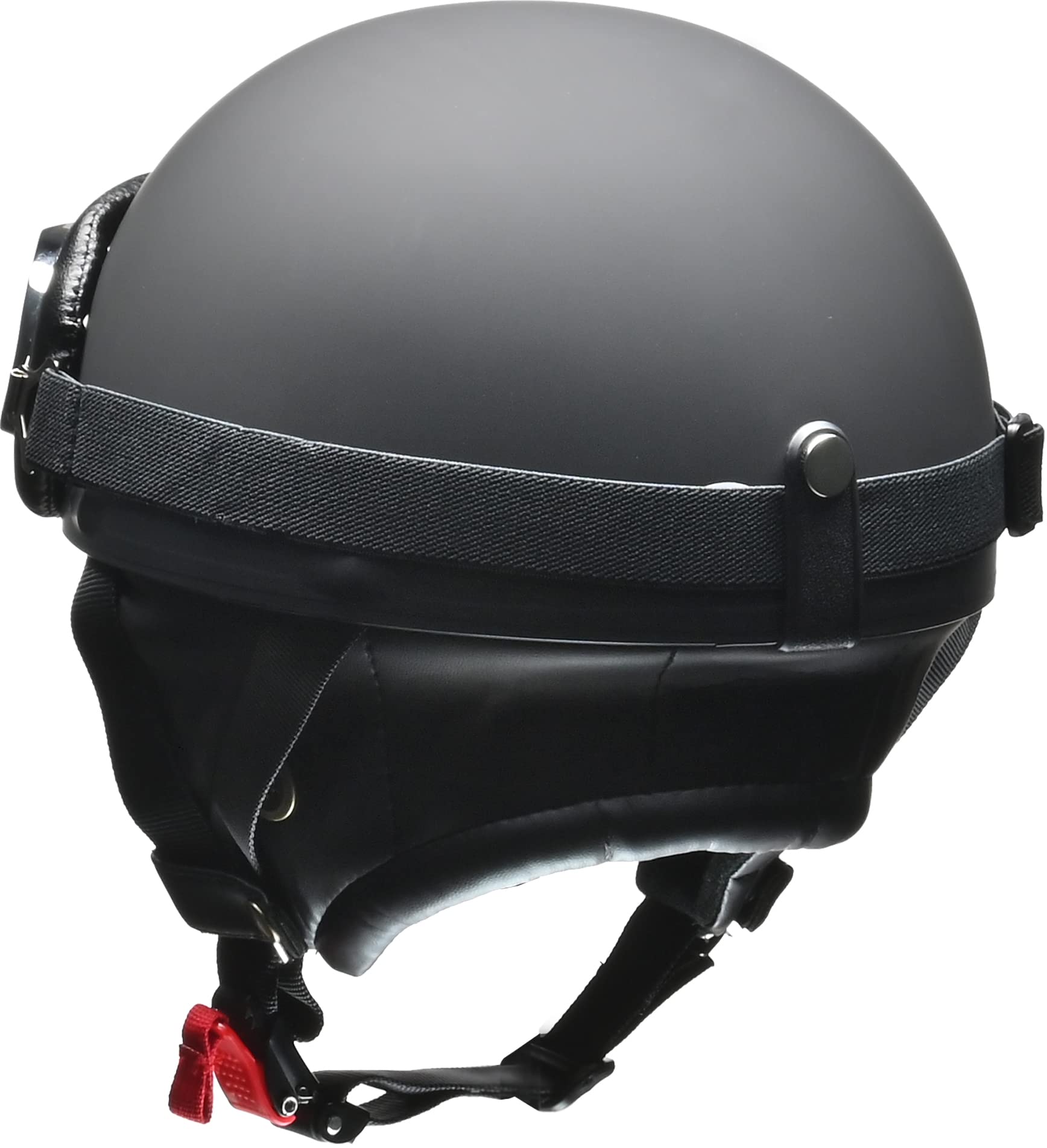 イヤーカバーと角型ゴーグルを装着した正統派ビンテージヘルメット。