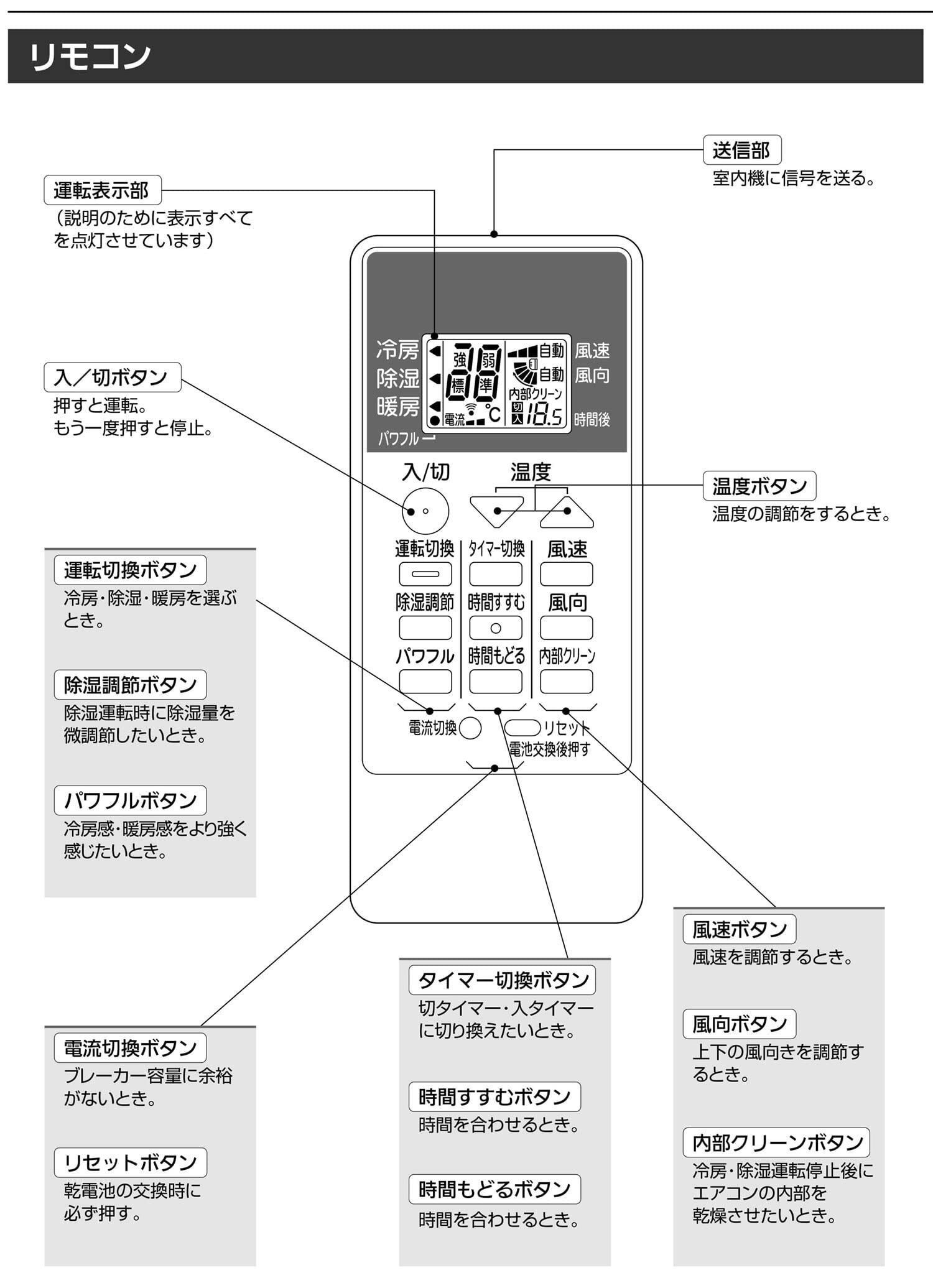※対応一部エアコン機種では当エアコン リモコン 三菱にはないボタンがある場合がございます。