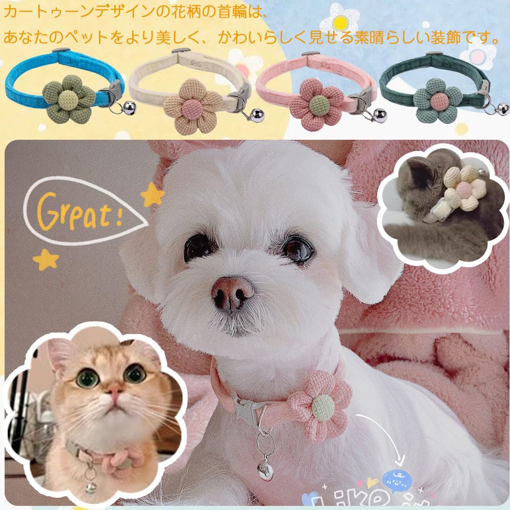 猫 首輪 猫の首輪 子犬 子猫 首輪 4個セット ネコ 首輪 かわいい 太陽花 鈴付き 小型犬適用 長さ調節可能 伸縮自在 柔らかい 軽量 ペット首輪 取り外し可能 可愛い 花付き首飾り(アプリコット/ライトピンク/スカイブルー/ダークグリーン4色各1個) | geisha Cat*