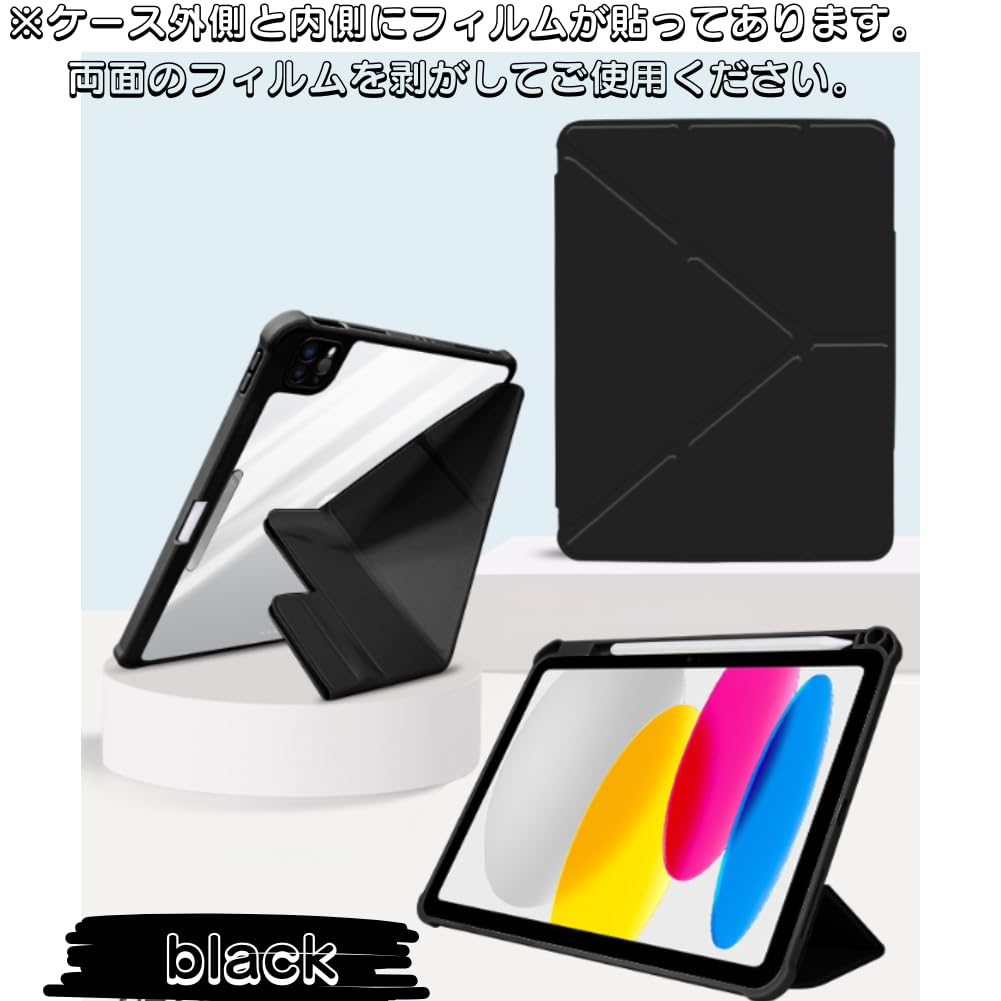 ipadmini6ケース ipadmini7 ケース 第6世代 第7世代 ペン収納 軽量 薄型 ミニ スタンド オートスリープ 縦 置き 全面保護 (ブラック)