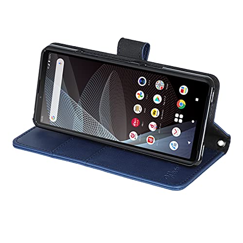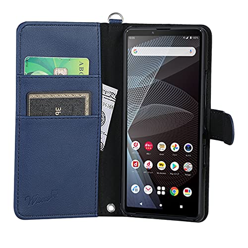 wisers Xperia 10 Ⅲ ケース 手帳型 SO-52B SOG04 A102SO スマホケース カバー (ダークブルー) 牛革PUレザー (カードホルダー/スタンド機能付) ストラップ 2種付 (ハンドストラップ/ネックストラップ) カード収納