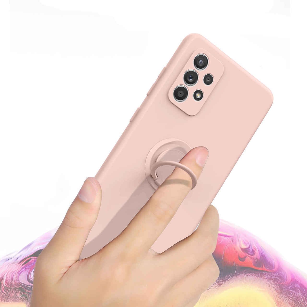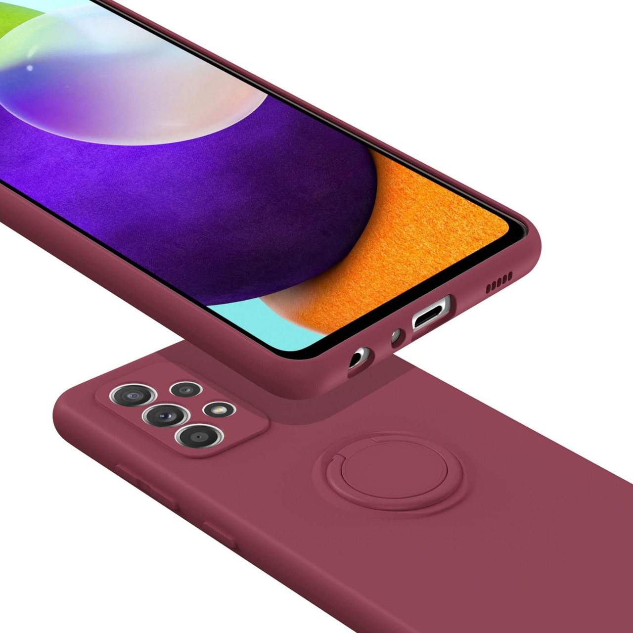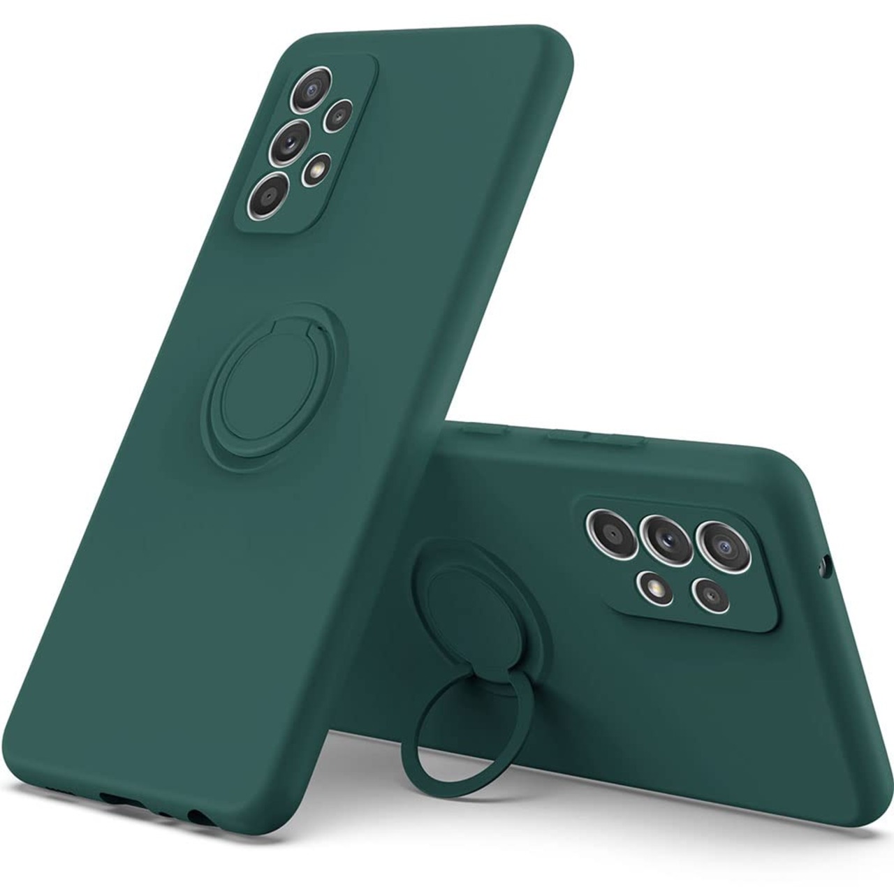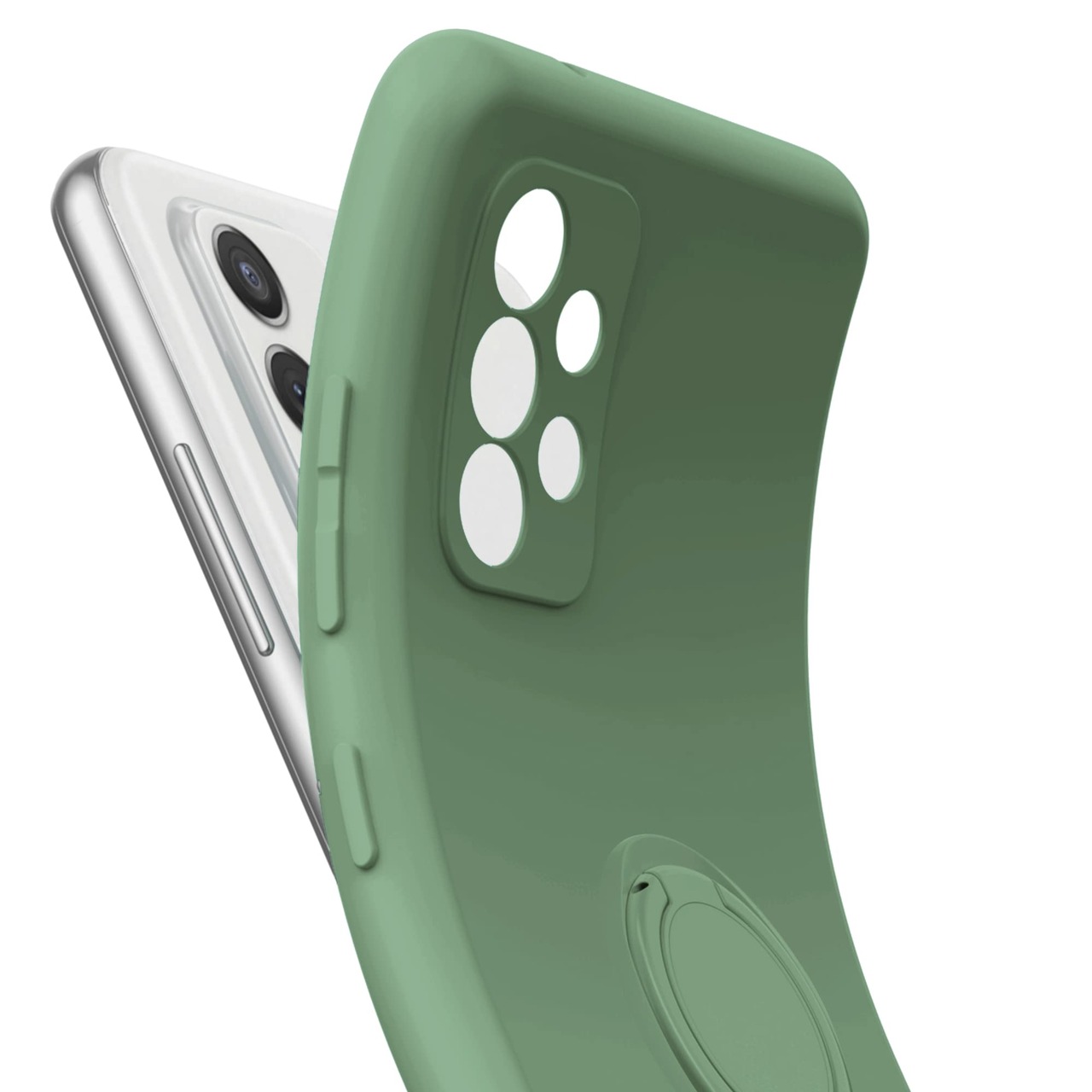 Galaxy A53 5G SC-53C SCG15 用 リング付き ソフトケース モスグリーン TPU保護ケース スタンド機能付き 360回転カバー 耐衝撃 シリコン 素材 超薄型 背面カバー 落下防止 ギャラクシー A53 ファイブジー