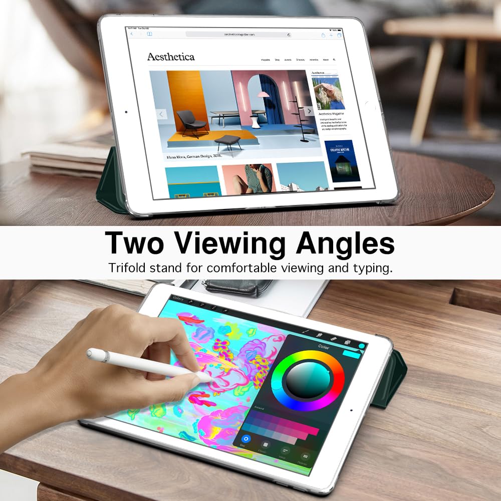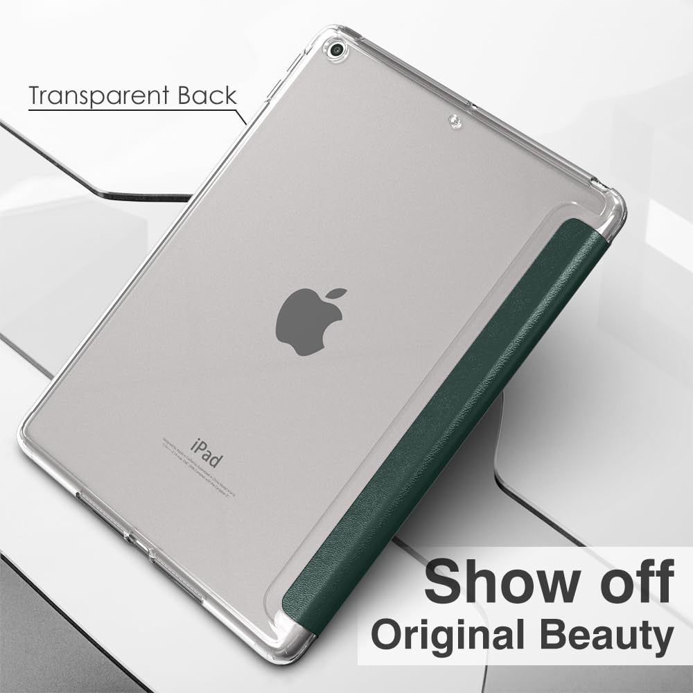 iPad 10.2 ケース 2021 MoKo iPad 9 ケース 第9世代/第8世代/第7世代 Apple iPad 10.2インチ 2021/2020/2019モデル カバー マット半透明 軽量 薄型 スタンド仕様 オートスリープ機能 高級PUレザー 底面TPU製 ソフト 耐久性 便利 スマートケース DarkGreen