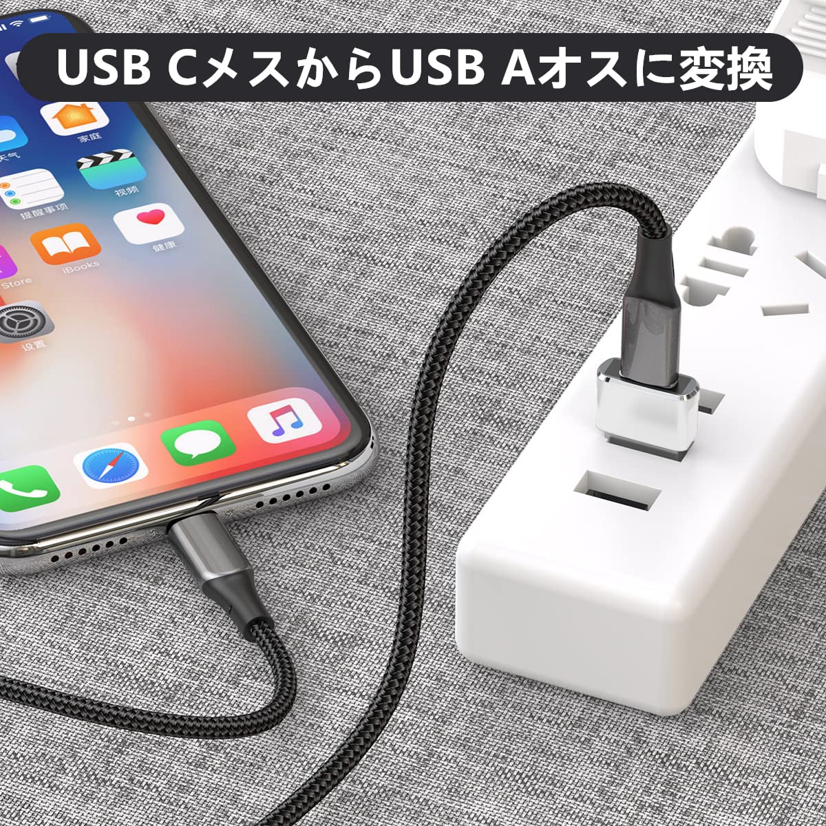 Basesailor USB CメスからUSBオス変換アダプター 2パック、が対応可能 iPhone 16 15 14 13 12 Mini Pro Maxミニプロマックス、Airpods 3 iPad 10 Air、Samsung Galaxy Note S20 Plus 20 Ultra Watch 5 Z Fold/Flip 4 Typeタイプ CからUSB A充電器プラグケーブルコンバータ