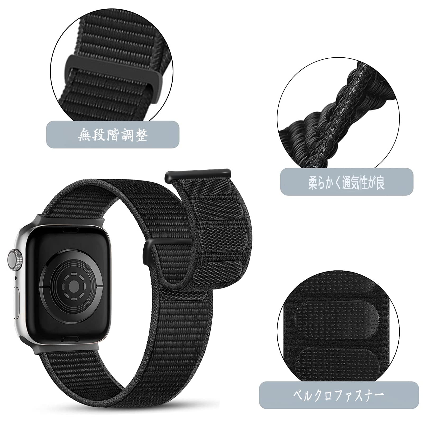 【適用モデル】ナイロンスポーツループバンド コンパチブル Apple Watch Series 10 9 8 7 6 5 4 SE Ultra。ウォッチケースのサイズに応じて、対応するバンドサイズ40mm 41mm 42mmまたは44mm 45mm 46mm 49mmを選択してください。