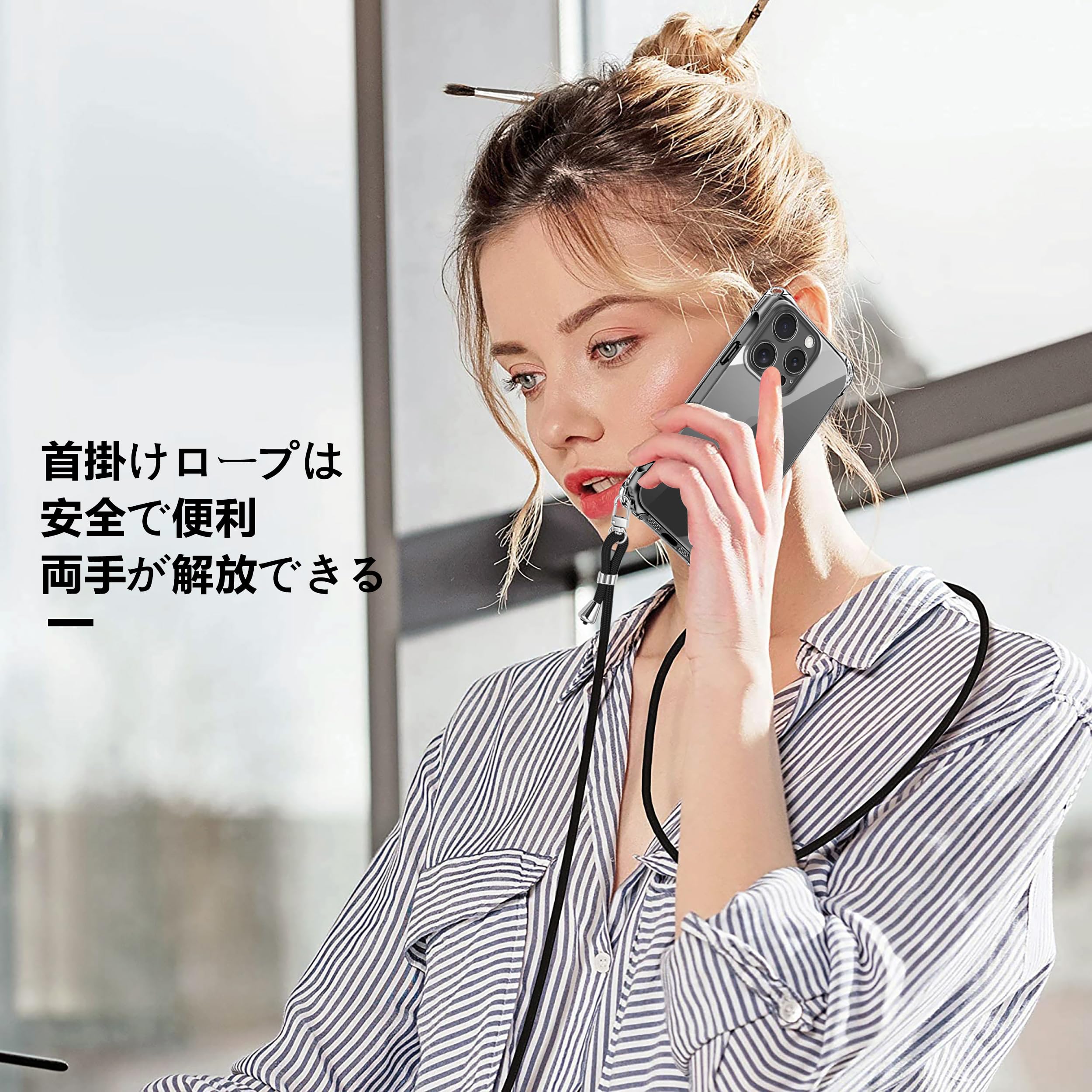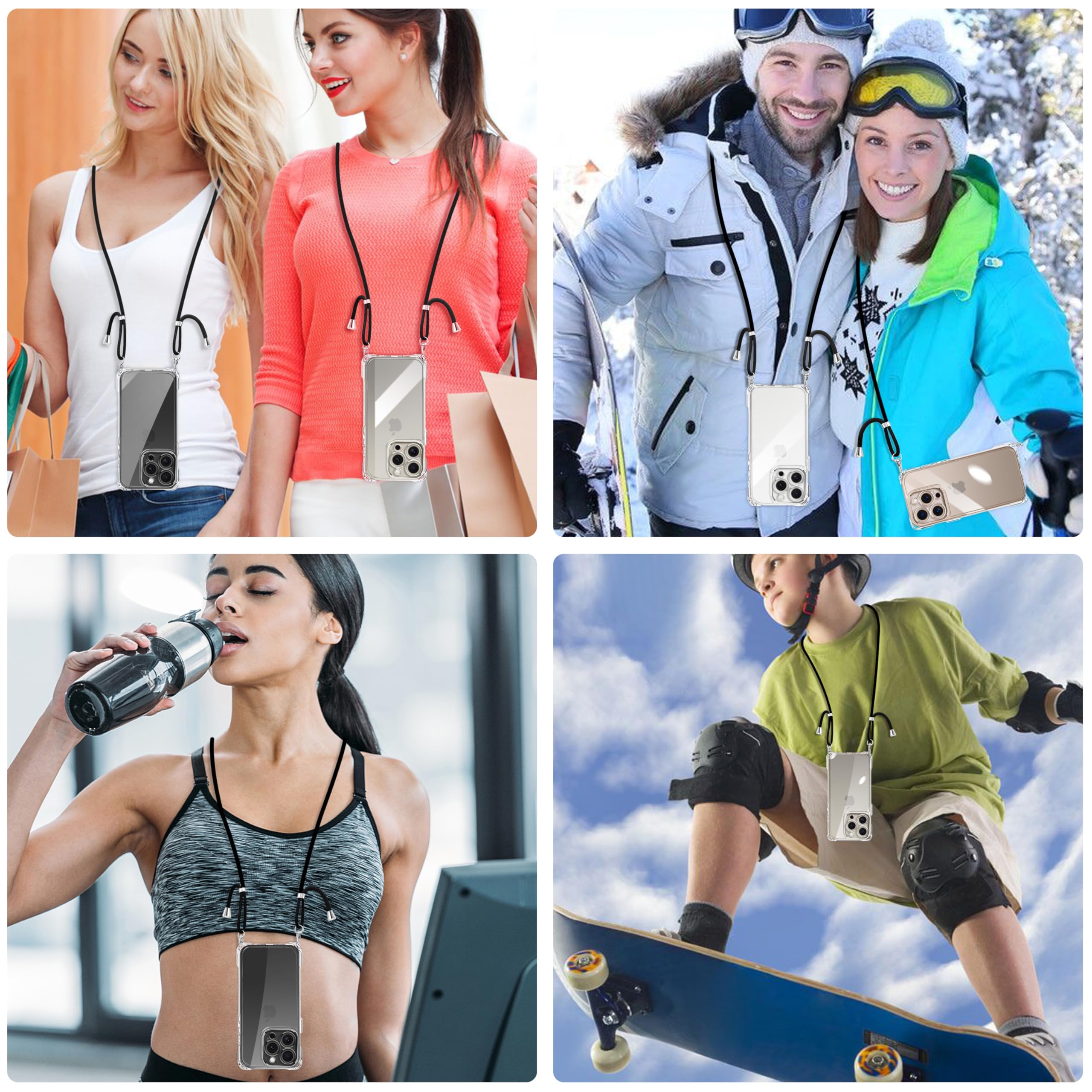 iPhone 16 Pro 用 ケース クリア ショルダー iPhone16pro 用 スマホケース アイフォン16Pro カバー 肩掛け 斜めかけ 縄掛けケース 透明 TPU 薄型 軽量 耐衝撃 携帯ケース 紐付き 斜めがけ 織りストラップ付き ネックストラップ ショルダー ケース 縦/横 2WAY 長さ調整可能 取り外し可能 落下防止 紛失防止 ワイヤレス充電対応 (クリア)
