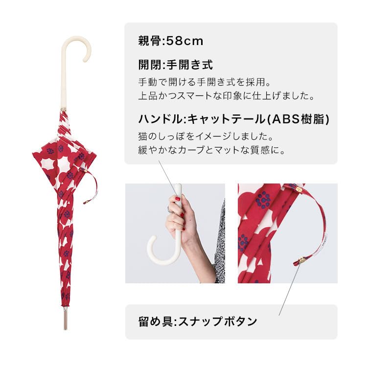 Wpc. 雨傘 カメリア ネイビー 長傘 58cm レディース 晴雨兼用 大きい 花柄 北欧 レトロ グラスファイバー 丈夫 通勤 通学 おしゃれ 可愛い 女性 4036-07-001