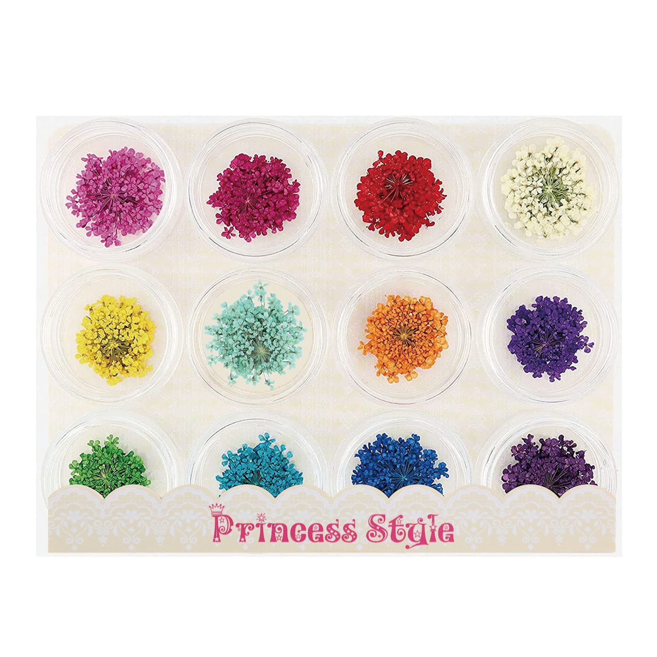 Princess-style ドライフラワー レース 押し花 ネイル パーツ レジン 封入 60枚ケース入り 12色×各5枚