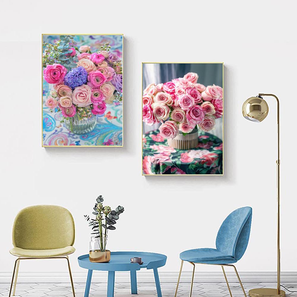 サムコス ダイヤモンドの絵画 ダイヤモンドアート キット 2個セット 暇つぶし おしゃれ かっこいい きれい 全面貼り付け ハンドメイド 初心者 DIY 手芸キット 家の装飾(花8)